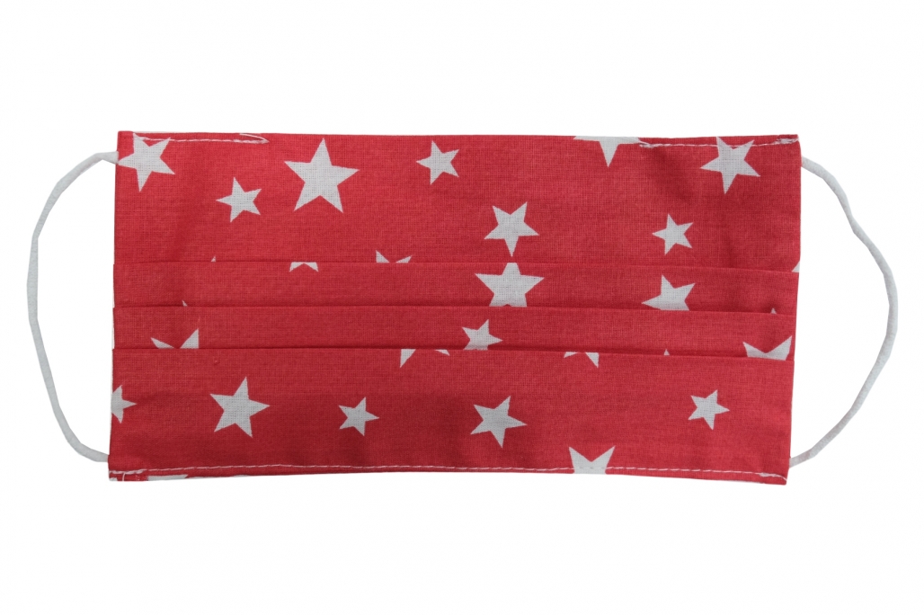 Pachet 5 masti de protectie rosii cu stele cu pliuri din bumbac 100% + 5 Filtre PPS de 330