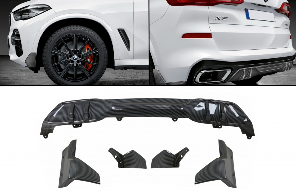 Pachet aero BMW X5 G05 prelungire bara fata si difuzor spate carbon film