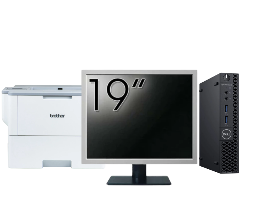 Pachet Calculator Second Hand DELL OptiPlex 3070 Mini, Intel Core i3-9100T 3.10 - 3.70GHz, 8GB DDR4, 256GB SSD + Monitor 19 Inch + Imprimanta Brother HL-L6300DW NewTechnology Media