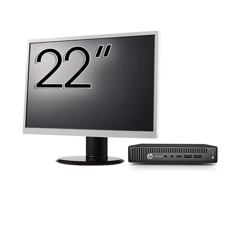 Pachet Calculator Second Hand HP EliteDesk 800 G2 Mini PC, Intel Core i7-6700T 2.80 - 3.60GHz, 16GB DDR4, 512GB SSD + Monitor 22 Inch NewTechnology Media