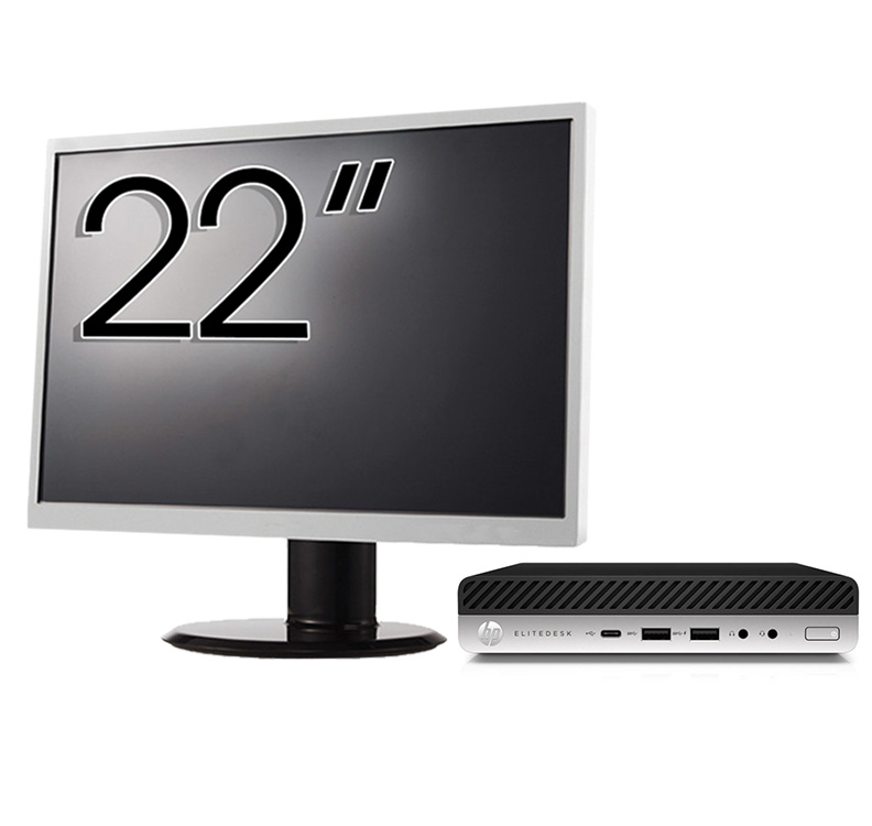 Pachet Calculator Second Hand HP EliteDesk 800 G3 Mini PC, Intel Core i7-7700T 2.90 - 3.80GHz, 8GB DDR4, 256GB SSD, Wi-Fi + Monitor 22 Inch NewTechnology Media