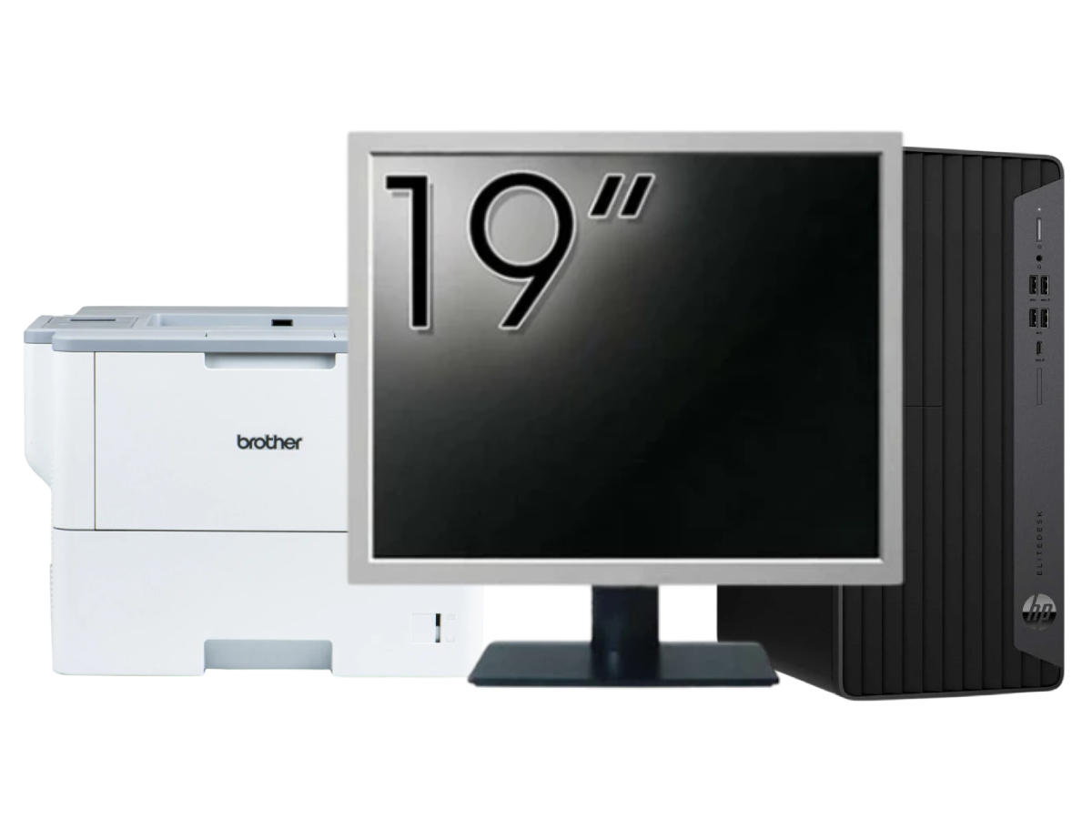 Pachet Calculator Second Hand HP EliteDesk 800 G6 Tower, Intel Core i5-10400F 2.90 - 4.30GHz, 16GB DDR4, Placa Video AMD Radeon R7 430 2GB, 256GB SSD + Monitor 19" & Imprimanta Brother HL-L6300DW NewTechnology Media