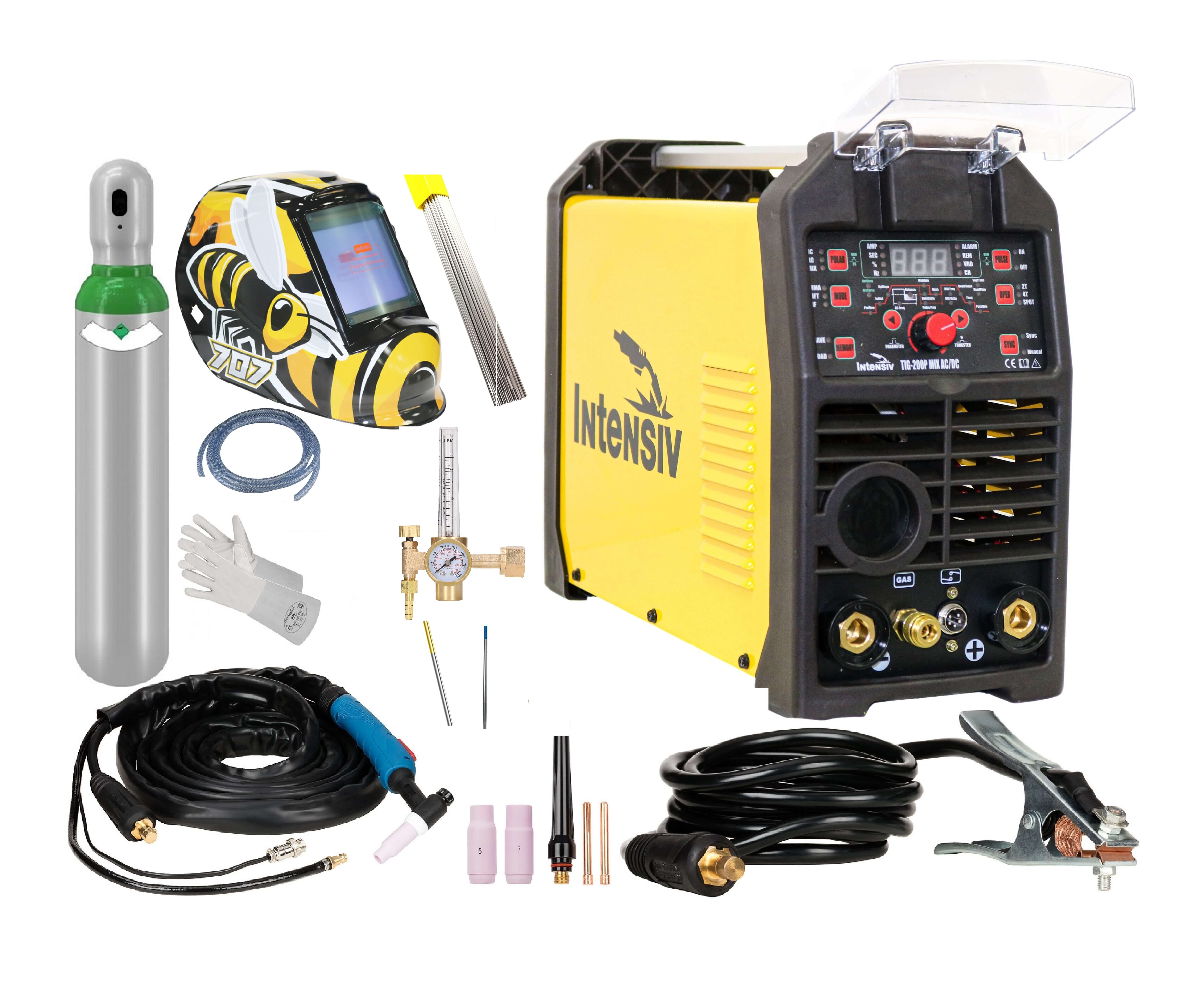 Pachetul complet de sudură TIG 200P MIX AC/DC 200A Intensiv este alegerea potrivită pentru cei care caută un echipament versatil, gata de lucru, pentru sudură TIG AC/DC și sudură MMA. Aparatul permite prelucrarea unei game variate de metale, inclusiv aluminiu, oțel și alte materiale sudabile în mediu protector cu argon, oferind control bun al arcului și rezultate curate.