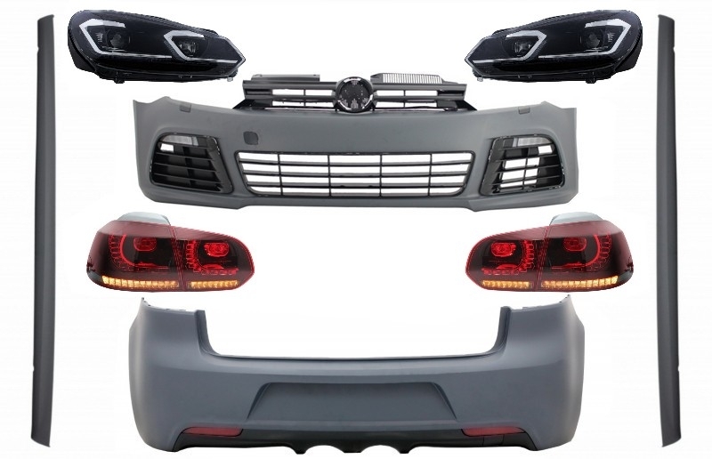 Pachet Complet Exterior compatibil cu VW Golf VI 6 MK6 (2008-2013) R20 Look cu Faruri LED si Stopuri Full LED Semnal Secvential Dinamic