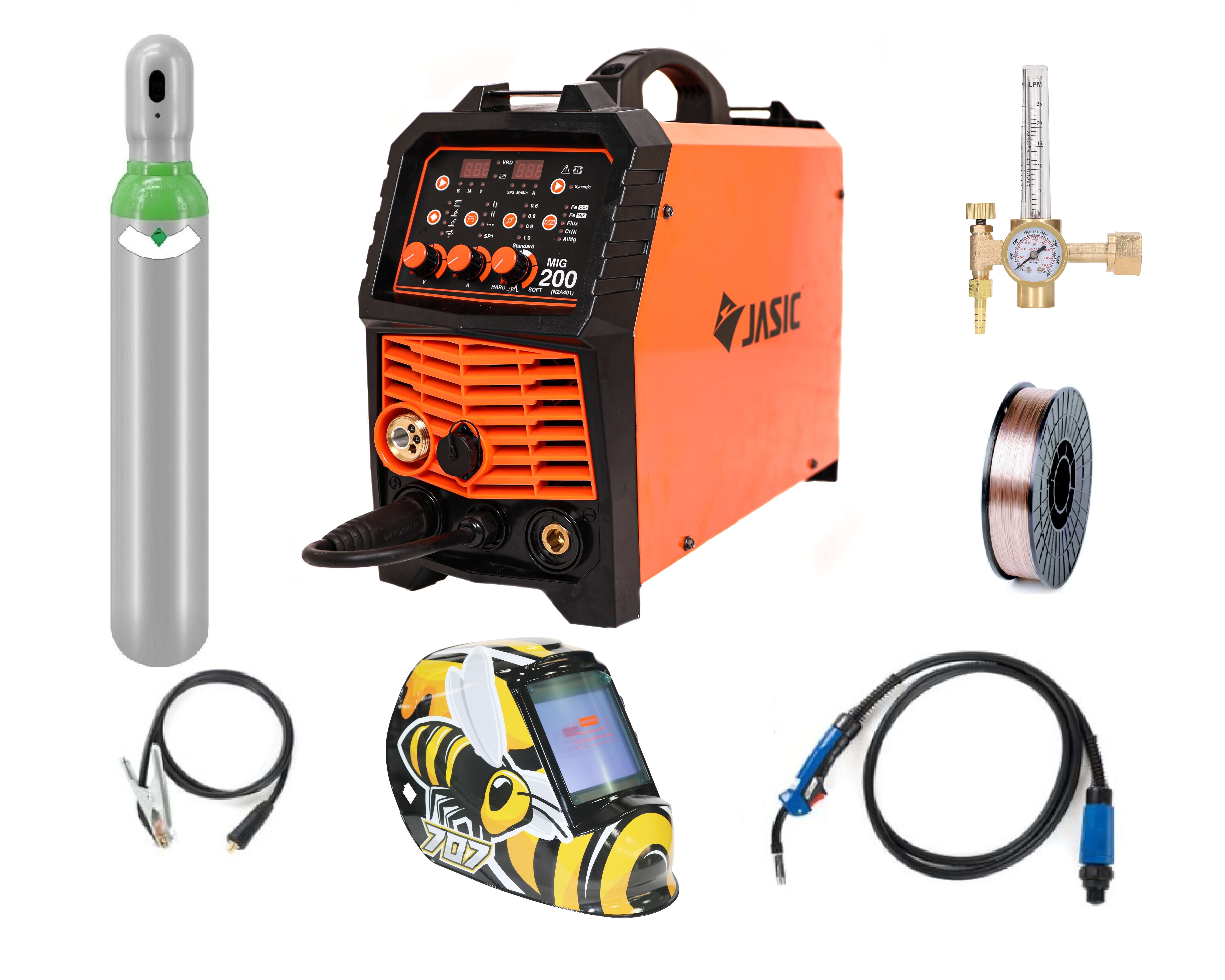 Pachet complet sudură MIG/MAG Jasic MIG 200 cu butelie, mască și rolă