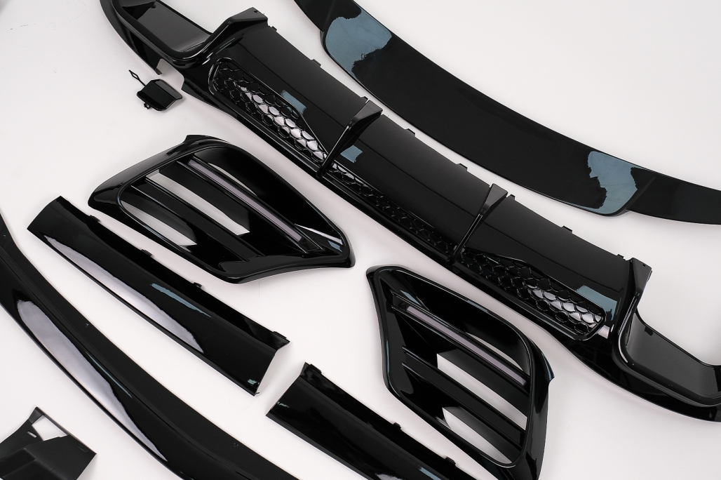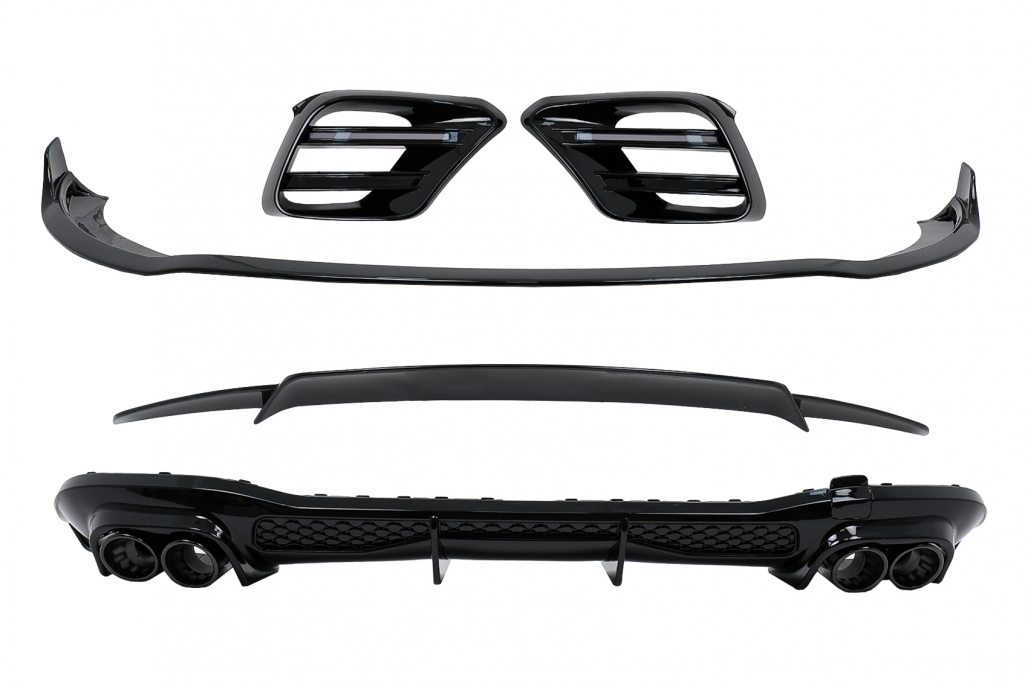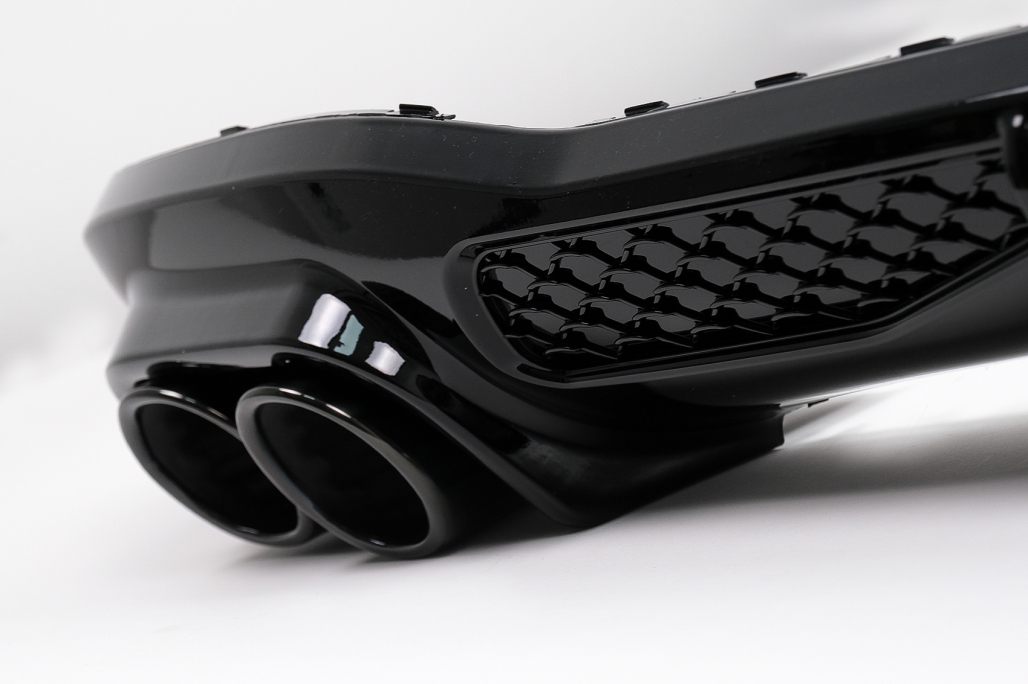 Pachet Exterior Aero Prelungire Bara Fata Fabricat din plastic de inalta calitate Culoare: Negru Lucios Grile Laterale Fabricate din plastic de inalta calitate Culoare: Negru Lucios Difuzor pentru bara spate Fabricat din plastic de inalta calitate Echipat cu ornamente de evacuare duble, capacul pentru carligul de remorcare, Ornamentele de evacuare sunt fabricate din otel de cea mai buna calitate Culoare: Negru Lucios Prelungire Bara Spate Fabricat din plastic de inalta calitate Culoare: Negru Lucios