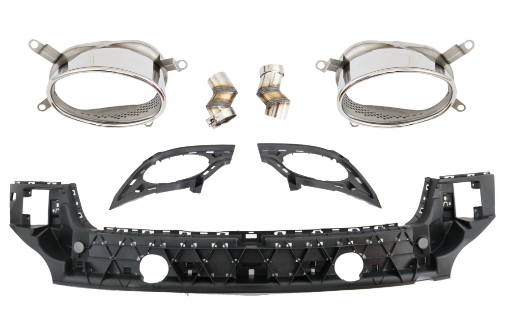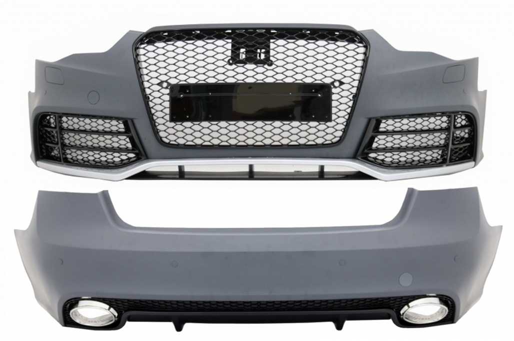 Setul este dedicat pentru Audi A5 8T Sportback Facelift 2013-2016 și include elemente esențiale pentru schimbarea completă a aspectului exterior. Bara față este echipată cu grilă centrală negru lucios, grile laterale și suporturi pentru senzori de parcare, iar bara spate completează perfect designul cu difuzor dublu și ornamente pentru evacuare din inox.
