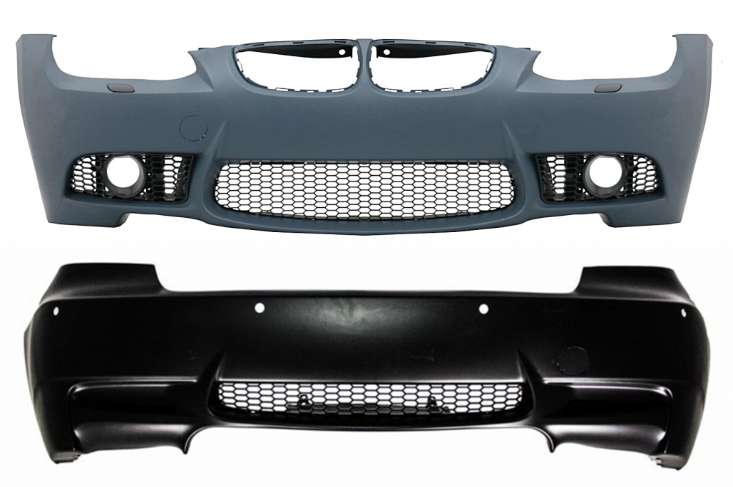 Realizat din materiale rezistente, acest kit caroserie BMW E92 E93 include bara fata si bara spate, fiind o alegere potrivita pentru reimprospatarea designului exterior. Bara fata este fabricata din polipropilena de calitate, iar bara spate este prevazuta cu difuzor pentru evacuare dubla si orificii pentru senzori de parcare.