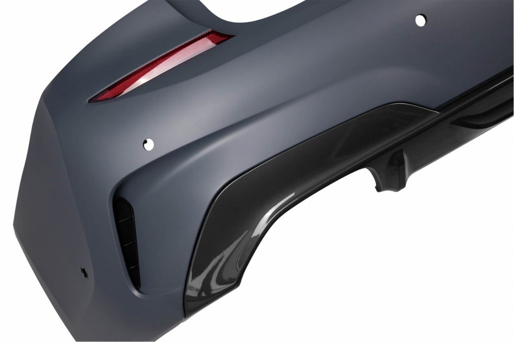 Pachet Exterior M-Tech Design Bara fata echipata cu grila centrala inferioara, grile laterale si suporti pentru senzorii de parcare (PDC) Fabricata din polipropilena de cea mai buna calitate *Bara nu este echipata cu capacelele pentru sistemul de spalare a farurilor Praguri laterale Fabricate din polipropilenă de înaltă calitate Bara spate echipata cu reflectorizanti laterali si fabricata din polipropilenă de înaltă calitate Difuzor cu Dubla Evacuare M-Tech Design
