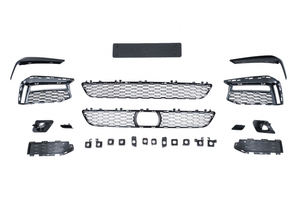 Bara fata si bara spate sunt echipate cu orificii pentru senzorii de parcare (PDC) Bara fata este echipata cu grila centrala, grilele laterale, capacul de remorcare. Bara fata, spate si pragurile laterale sunt fabricate din polipropilena de cea mai buna calitate