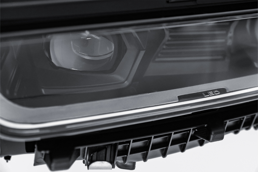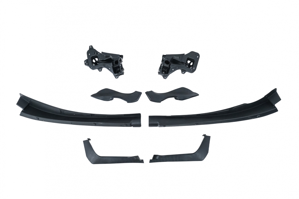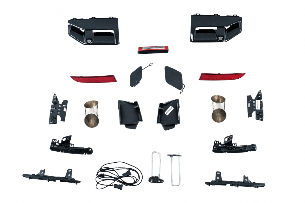 Kit complet de conversie Bara fata echipata cu gauri PDC, suporturi PDC, grila centrala, grila centrala inferioara si ornamente Bara fata este fabricata din polipropilena Faruri LED Pozitie: LED Faza Lunga/scurta: LED Semnal: LED Capota Material: metal premium Aripi fata Material: metal premium Capacul de conversie al portbagajului realizat din otel Stopuri LED Bara spate echipata cu gauri PDC si accesorii reflectorizante rosii Bara spate este fabricata din polipropilena