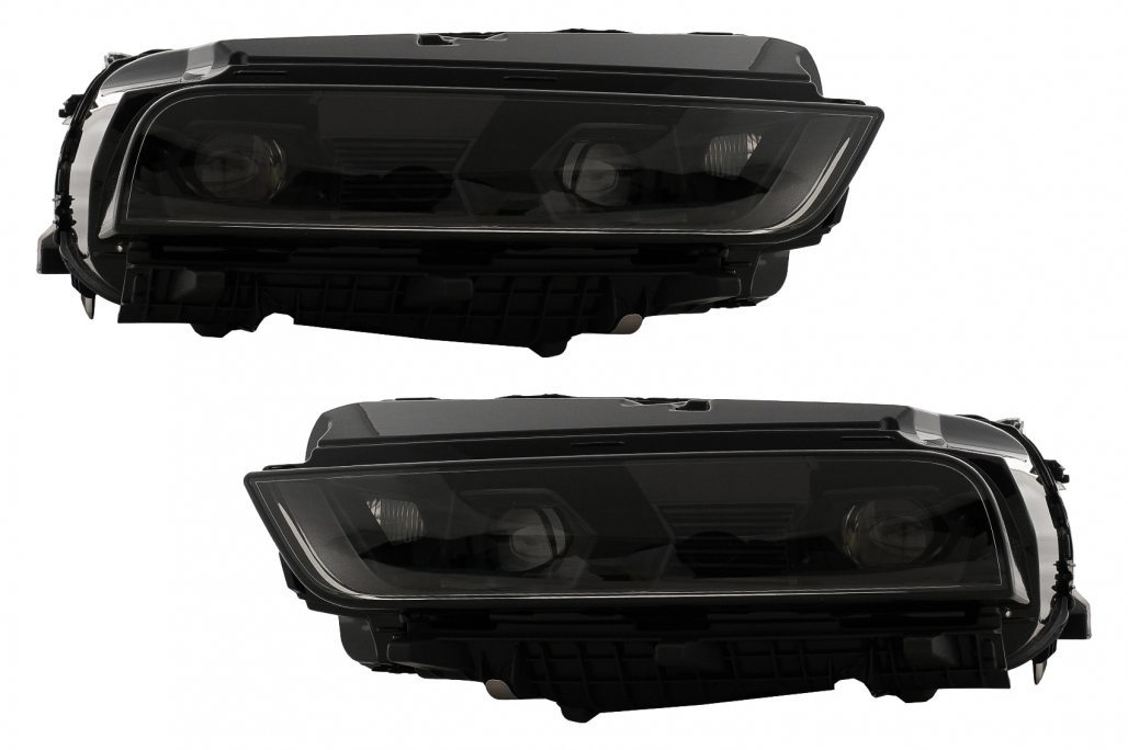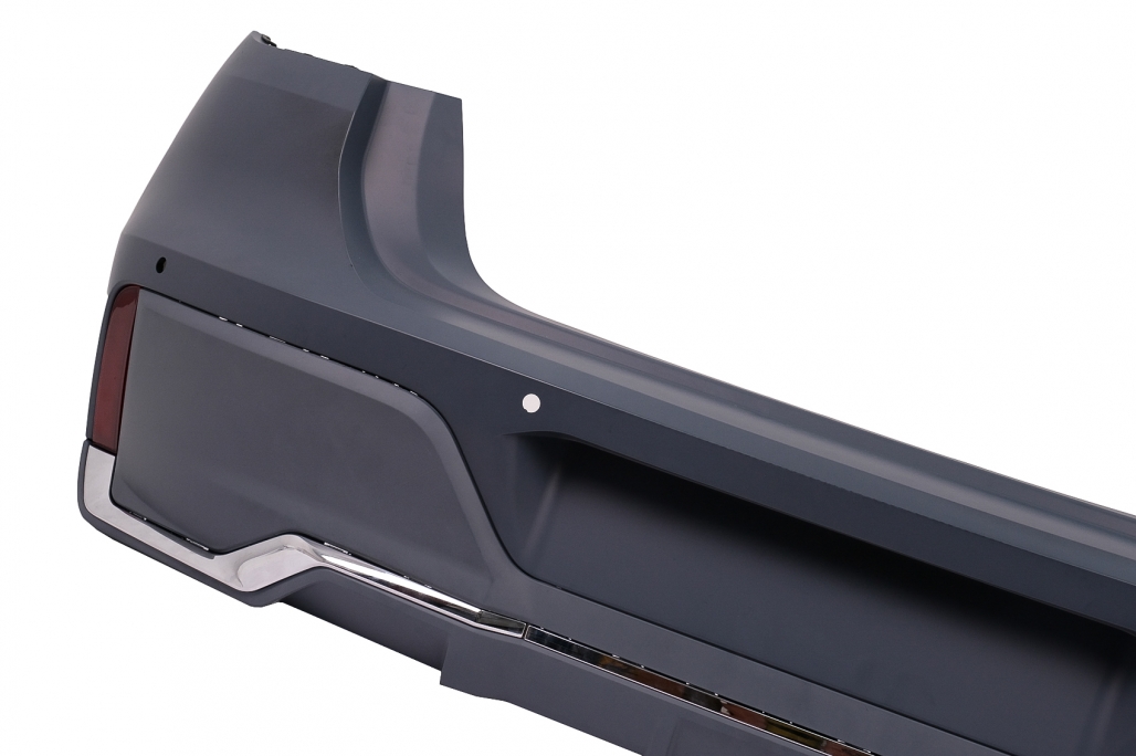 Kit complet de conversie Bara fata echipata cu gauri PDC, suporturi PDC, grila centrala, grila centrala inferioara si ornamente Bara fata este fabricata din polipropilena Faruri LED Pozitie: LED Faza Lunga/scurta: LED Semnal: LED Capota Material: metal premium Aripi fata Material: metal premium Capacul de conversie al portbagajului realizat din otel Stopuri LED Bara spate echipata cu gauri PDC si accesorii reflectorizante rosii Bara spate este fabricata din polipropilena