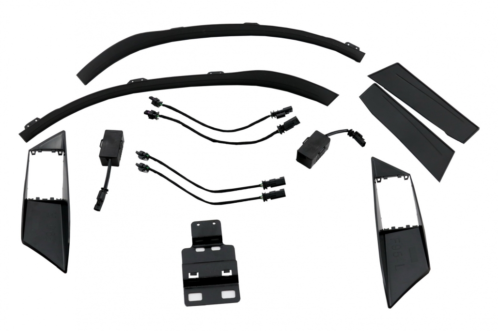 - Conținut pachet: bară față, bară spate, extensii aripi, ornamente sistem evacuare
