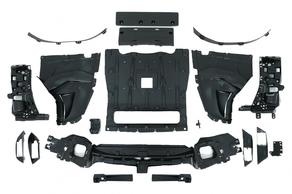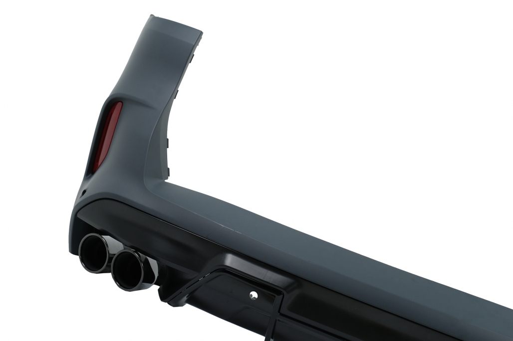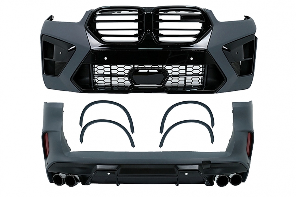 Componentele sunt fabricate din materiale rezistente, potrivite pentru utilizare zilnica si pentru un montaj profesionist. Bara fata si bara spate sunt realizate din polipropilena de calitate superioara, extensiile de aripi completeaza perfect profilul masinii, iar ornamentele pentru evacuare din inox accentueaza stilul sportiv al ansamblului.