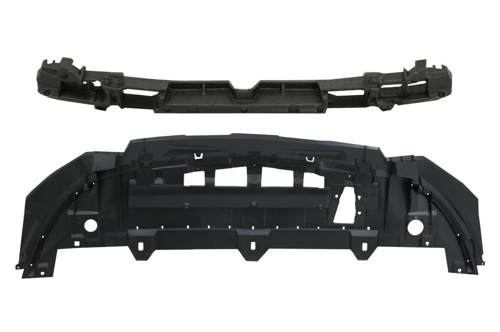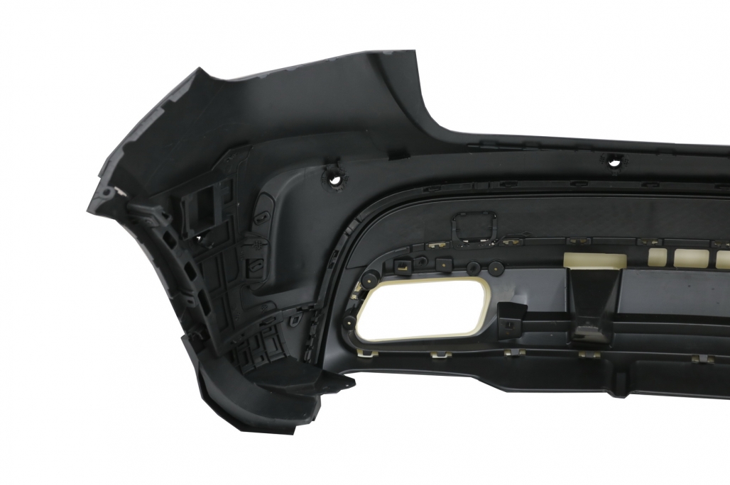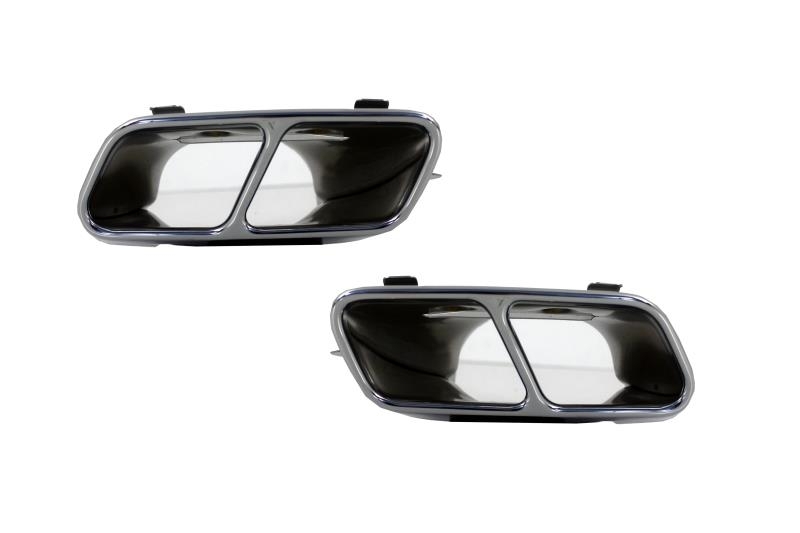 Pachet exterior complet Bara Fata echipata cu grila central-inferioara, grile latelare, suporti pentru senzorii de parcare (PDC) si capacele sistemului de spalare al farurilor. Ornamente pentru sistemul de evacuare Bara Spate echipata cu difuzor de aer cu evacuare dubla, suporti pentru senzorii de parcare (PDC) Aceste praguri sunt fabricate din otel inoxidabil, aluminiu si PVC.