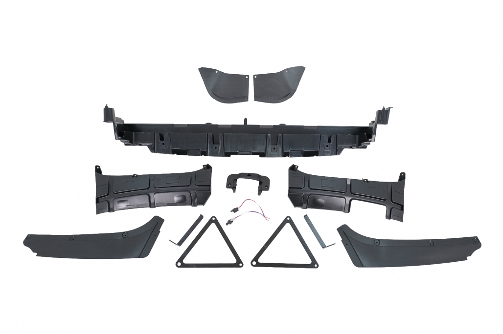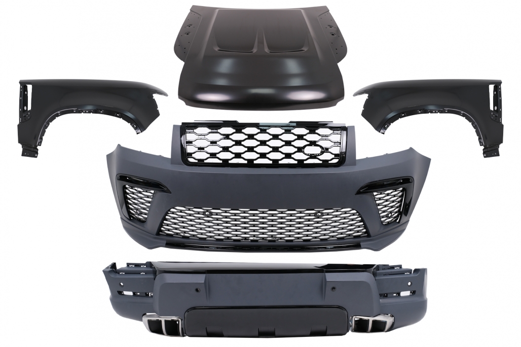 Kit complet Bara fata echipata cu gauri PDC, grila centrala, grila centrala inferioara, grile laterale si ornamente Bara fata este fabricata din polipropilena Capota Material: metal premium Aripi fata Material: metal premium Bara spate echipata cu gauri PDC Bara spate este fabricata din polipropilena Ornamente tobe de evacuare Ornamentele de esapament sunt realizate din otel inoxidabil