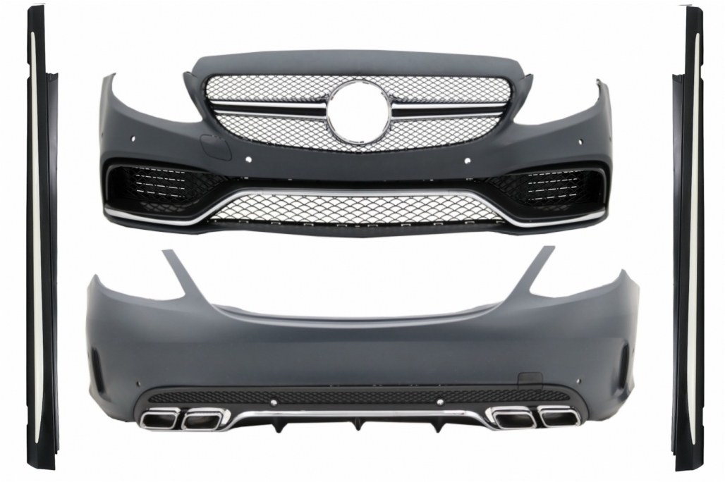 Transformă aspectul mașinii tale cu acest pachet exterior complet Mercedes C-Class W205, creat special pentru modelele Sedan 2014-2018 și inspirat din linia sportivă C63 Design. Kitul oferă un look agresiv, elegant și modern, fiind ideal pentru șoferii care își doresc un upgrade vizual premium, apropiat de stilul AMG.