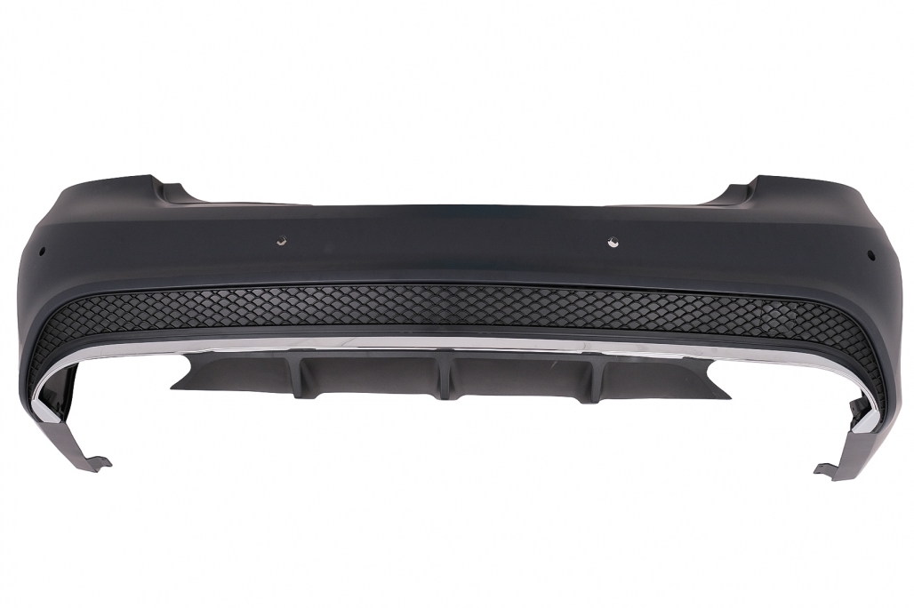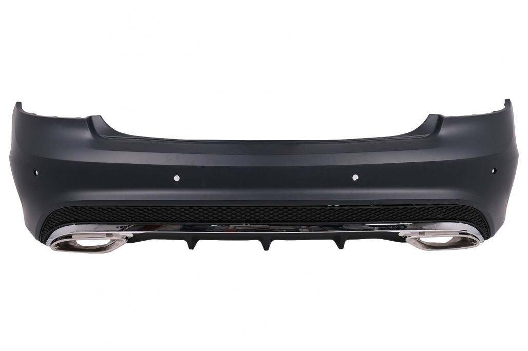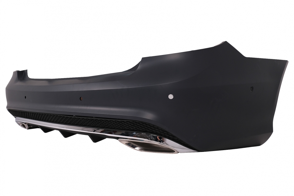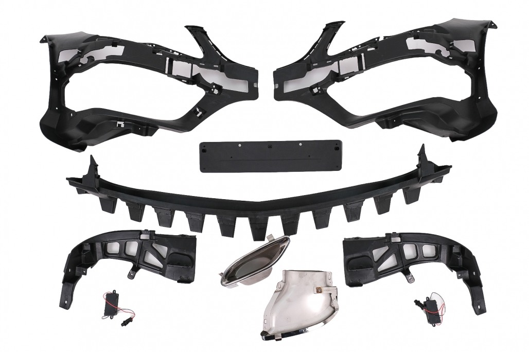 Pachet Complet Bara fata echipata cu suporti pentru senzorii de parcare (PDC) - 6, grila central-inferioara, grille laterale. Bara fata este fabricata din polipropilena. Faruri LED Culoare: negru, sticla transparenta Faza scurta: LED Faza lunga: LED Poziitie: LED Semnal: LED static Bara spate echipata cu suporti pentru senzorii de parcare (PDC) si difuzor cu evacuare dubla. Bara spate este fabricata din polipropilena. Stopuri cu LED Culoare: Rosu Poziție: LED Semnal: LED static Frana: LED Ceata: LED Marsarier: LED Ornamente de evacuare Ornamentele de evacuare sunt realizate din oțel inoxidabil
