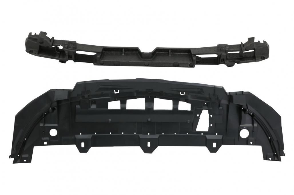 Pachet exterior complet Bara Fata echipata cu grila central-inferioara, grile latelare, suporti pentru senzorii de parcare (PDC) si capacele sistemului de spalare al farurilor. Bara Spate echipata cu difuzor de aer cu evacuare dubla, suporti pentru senzorii de parcare (PDC) Ornamente pentru sistemul de evacuare