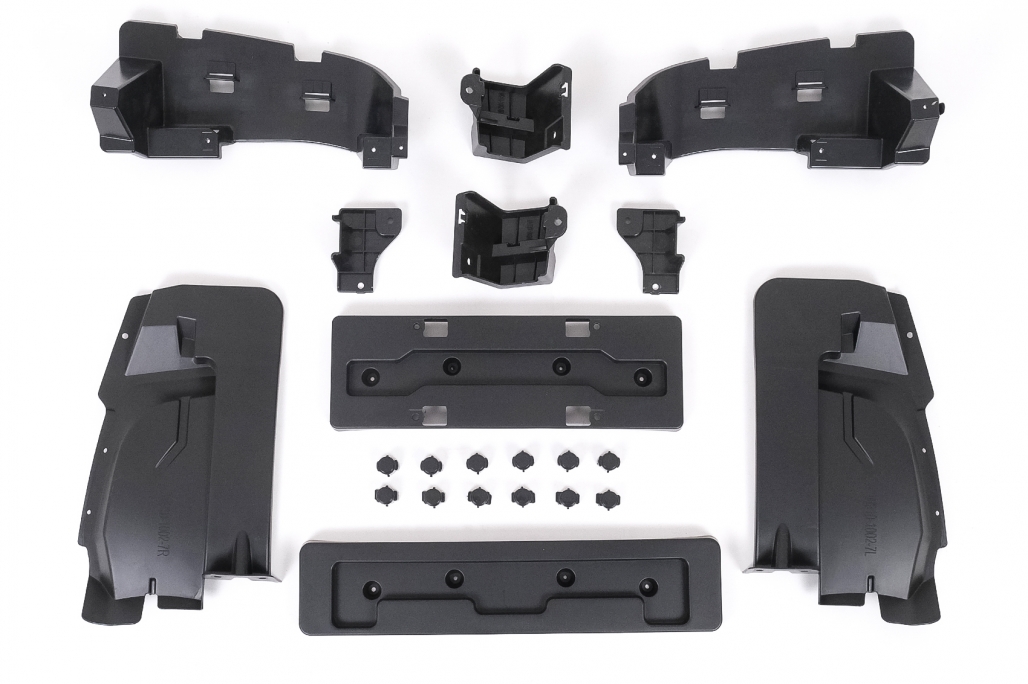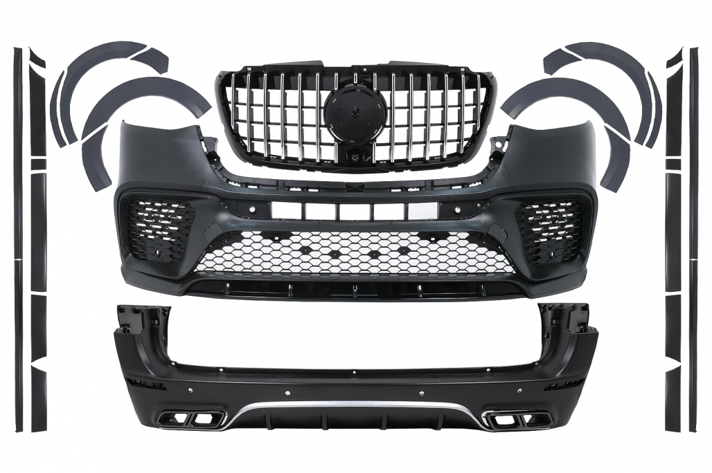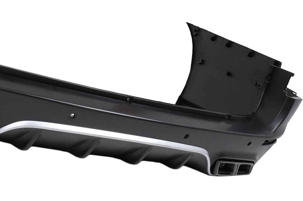 Bara fata Bara fata echipata cu grila centrala, grile inferioare si ornamente Bara fata este fabricata din PP (polipropilena) de inalta calitate Extensii roti Extensii roti fabricate din polipropilena de inalta calitate. Bandouri usi Bandouri usi fabricate din polipropilena de inalta calitate. Bara spate Bara spate echipata cu difuzor de aer si ornamentele tobe de eaapament. Bara spate este fabricata din PP (polipropilena) de inalta calitate Catadioptrii nu sunt inclusi, se pot utiliza cei originali. Ornamentele de evacuare Ornamentele de evacuare fabricate din oțel inoxidabil