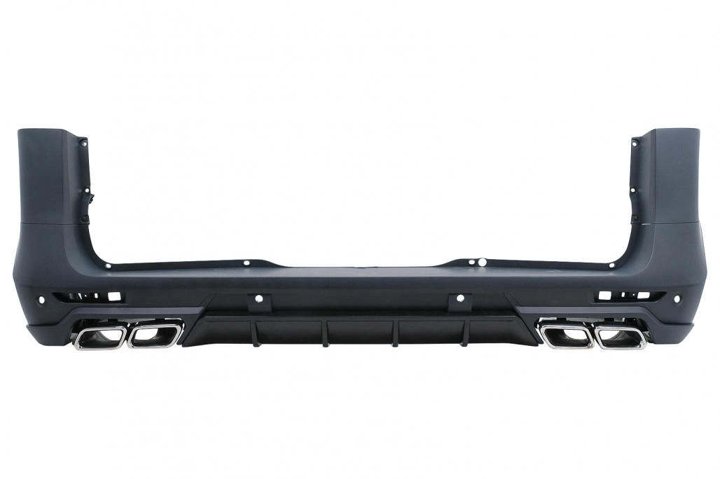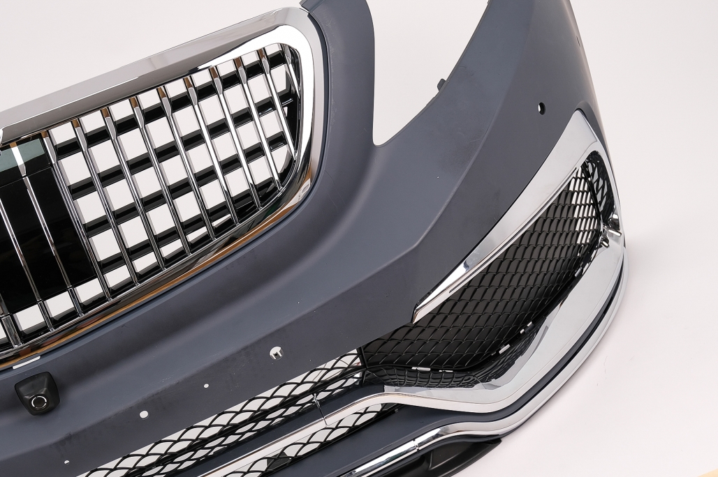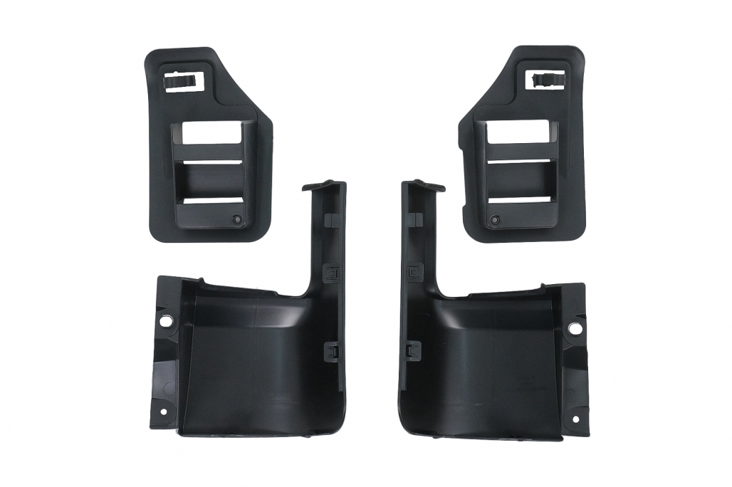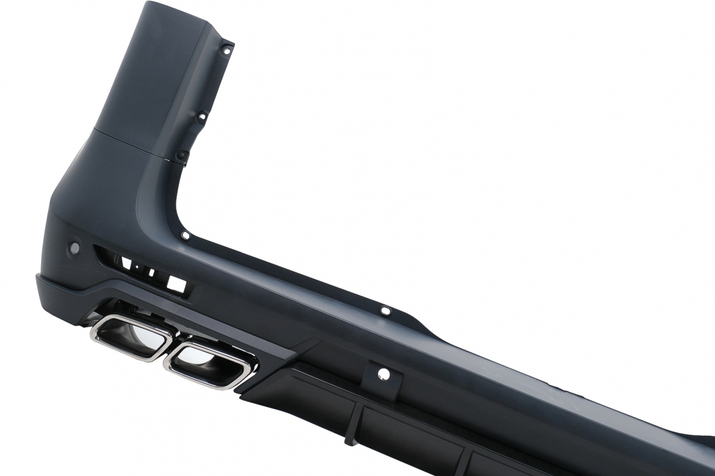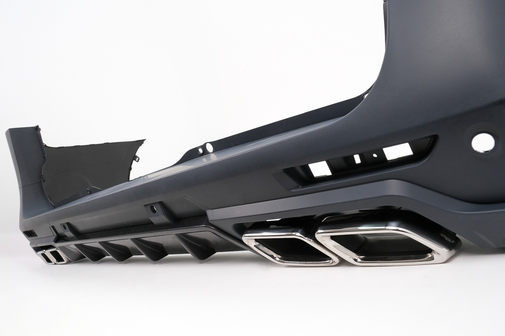 Pachet Exterior Complet Bara Fata Fabricata din polipropilena Echipata cu grila centrala inferioara, suport pentru camera 360, grile laterale, ornamente, suporti pentru PDC (senzori de parcare). Grila centrala Fabricata din plastic de cea mai buna calitate Bara spate Fabricata din din polipropilena Echipata cu suporti pentru PDC (senzori de parcare), difuzor bara spate cu ornamente pentru evacuare *Nota: Ornamentele pentru evacuare sunt doar pentru design. Produs din plastic