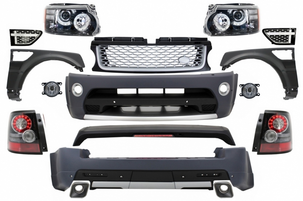 Instructiunile de instalare nu sunt incluse! Va recomandam instalarea intr-un service auto autorizat! Pentru Land Range Rover Sport L320 (2005-2009) sunt necesare accesorii suplimentare (fara a fi limitate la): Jeturi de spalator faruri 1x HLWJRRSL320 Adaptoare sistem de spalare faruri de la 8 la 5 mm Senzor de parcare PDC 4x PDCRRSL320 FIre de conversie adaptor pentru senzor de parcare PDC 4x PDCWRRSL320 Suport faruri 1x BRHLRRSFOE Suport bara fata / aripa 1x BRFFRRS Fire pentru lumini de ceata si senzori PDC (fata si spate) Becuri PY24W pentru Faruri Rezistor pentru stopuri RR Sport 1x WH25-15RJI (daca este necesar) Pentru eleronul de luneta sunt necesare modificari vis a vis de punctele de montaj.