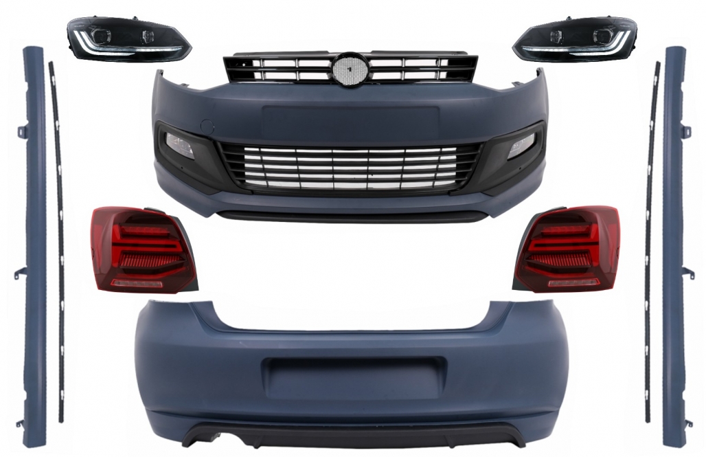 Pachet Exterior cu Faruri si Stopuri compatibil cu VW Polo 6R 6C (2009-2017) R-Line Design Semnal Dinamic