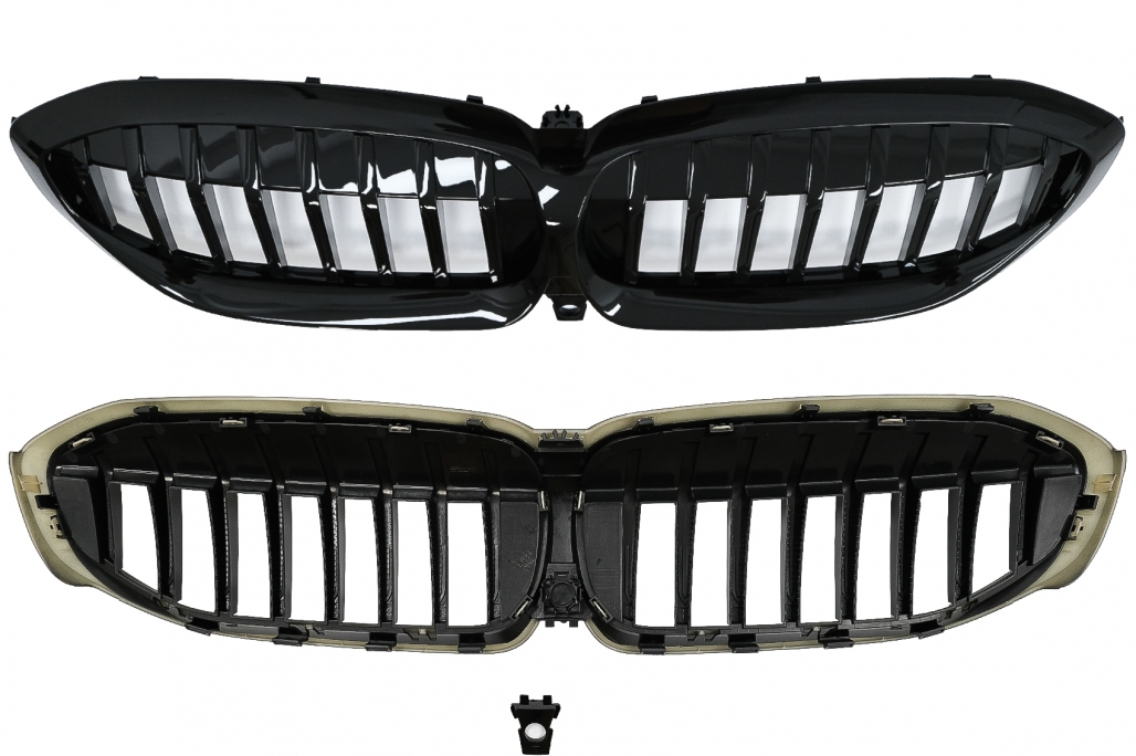 Grile Centrale Negru Lucios Grilele sunt fabricate din plastic de cea mai buna calitate Culoare: Negru Lucios * compatibil si cu control activ al lamelelor de aerisire din grila radiatorului si Parking Assistant Plus camera Prelungire Bara Fata fabricata din polipropilena de cea mai buna calitate. Culoare: Negru Lucios Extensii Praguri Laterale fabricate din polipropilena de cea mai buna calitate. Culoare: Negru Lucios Produsul nu necesita vopsire. Difuzor de aer cu evacuare dubla M340i M Look, fabricat din ABS plastic de cea mai buna calitate. Produsul nu necesita vopsire. Culoare: Negru Lucios Ornamentele sunt fabricate din otel inoxidabil 304 de cea mai buna calitate. Culoare: Negru Grafit Eleron Portbagaj M Sport Design Eleronul este fabricat din plastic de cea mai buna calitate Culoare: negru lucios