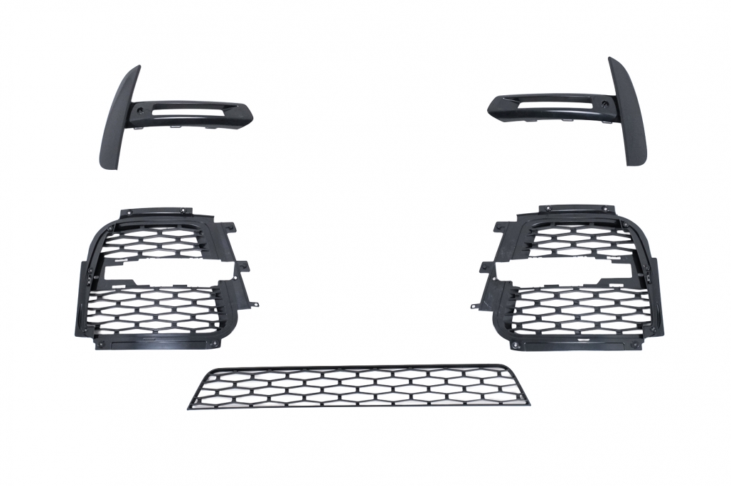 Bara Fata este echipata cu grila centrala, grila central inferioara, suportii pentru senzorii de parcare (PDC). * capace spalator faruri (SRA) nu sunt incluse Bara este fabricata din polipropilena de cea mai buna calitate. Grila Centrala Material: Plastic ABS Bara spate este echipata cu difuzor, ornamente pentru sistemul de evacuaresi suportii pentru senzorii de parcare (PDC). Bara spate este fabricata din PP (polipropilena) de cea mai buna calitate. Ornamentele pentru sistemul de evacuare sunt fabricate din otel. Ornamente aerisiri laterale Material:plastic ABS Bandouri Usi fabricate din polipropilena de cea mai buna calitate. * nu pot fi montate impreuna cu pragurile masinii