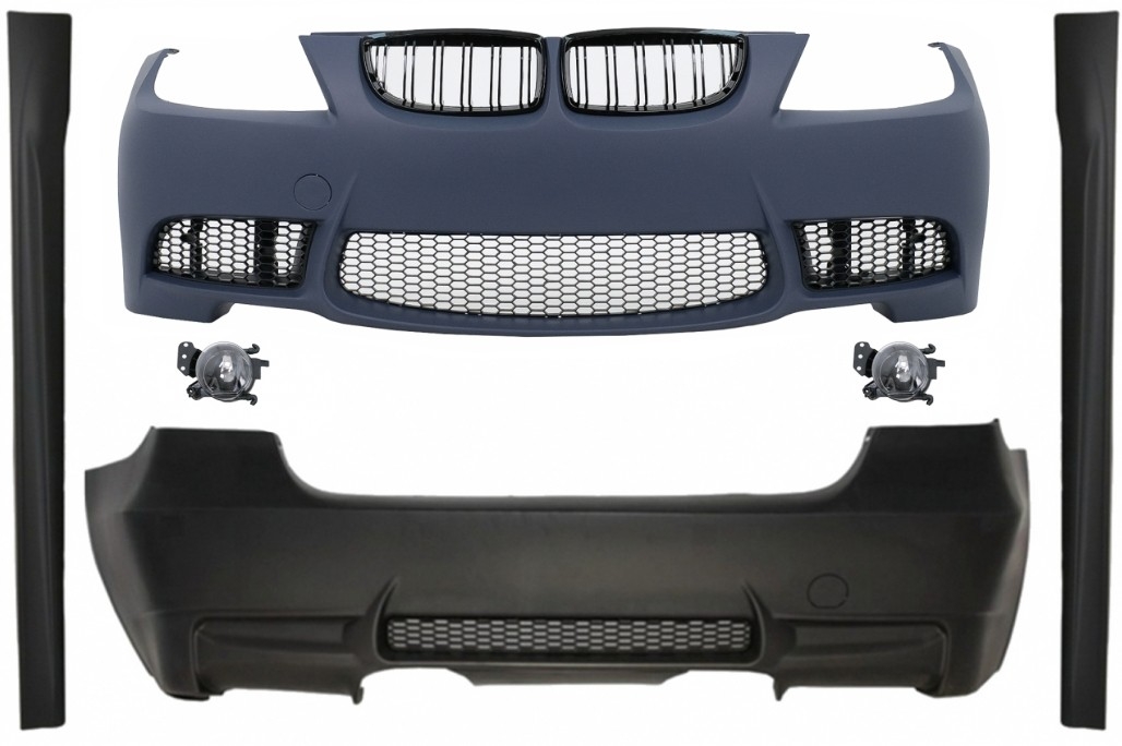 Transforma aspectul masinii tale cu acest pachet exterior M3 pentru BMW Seria 3 E90/E91, conceput pentru un look sportiv, modern si agresiv. Kitul este ideal pentru soferii care doresc un upgrade estetic complet, pastrand o compatibilitate buna cu liniile originale ale caroseriei. Include bara fata M3 Design, bara spate M3 Design, praguri laterale si proiectoare de ceata, pentru un plus de stil si functionalitate.