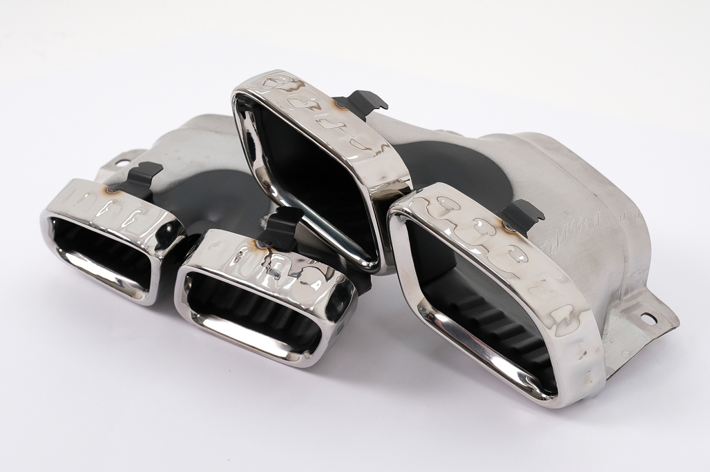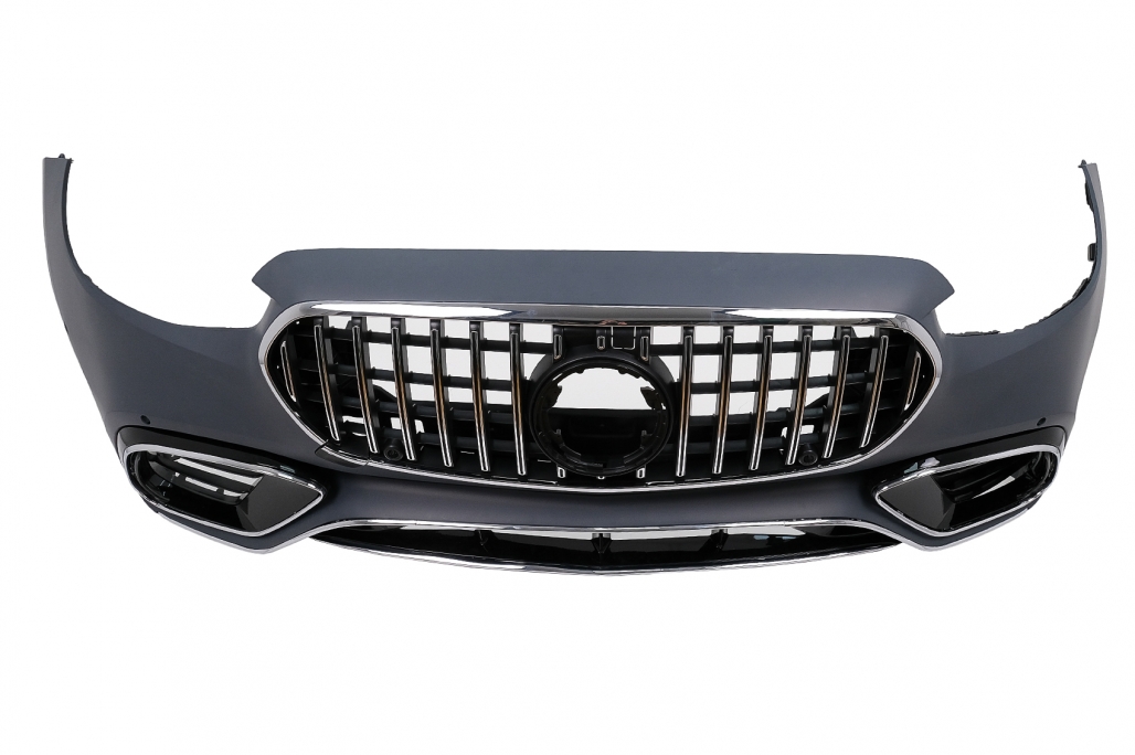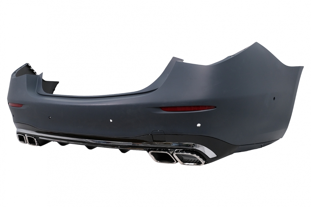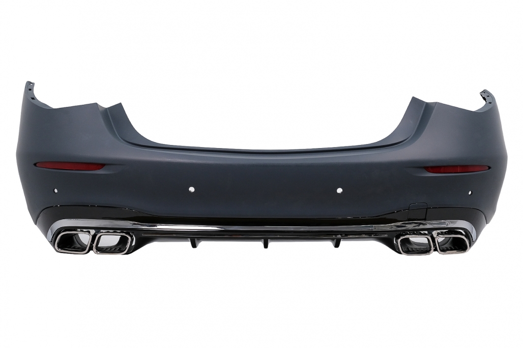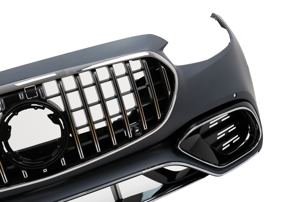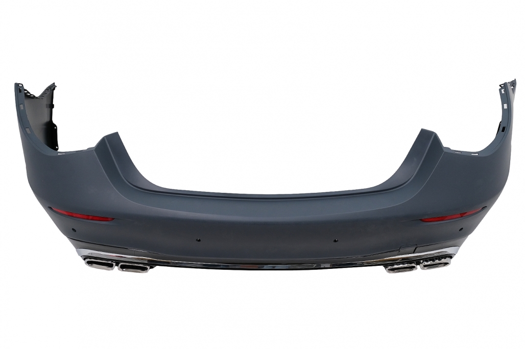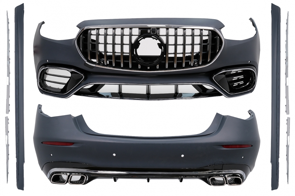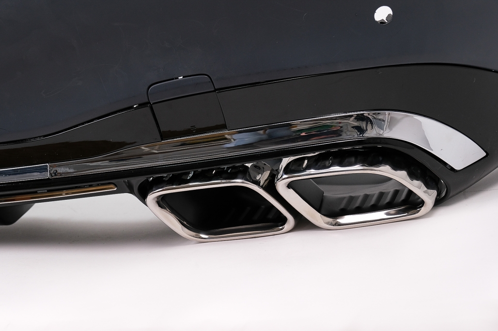 Pachet exterior Complet Bara fata echipata cu grila central-inferioara, grile laterale, suporti pentru senzorii de parcare (PDC) si capacul carligului de remorcare. Grila centrala Grila este fabricata din plastic ABS Emblema A0008880500 poate fi montată pe grilă (emblema nu este inclusă) Bara Spate Bara Spate fabricata din polipropilena. Ornamente evacuare Aceste ornamente sunt fabricate din otel inoxidabil 304 de cea mai buna calitate Montajul acestor ornamente nu presupune utilizarea operatiei de sudura