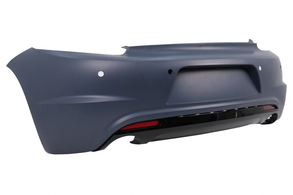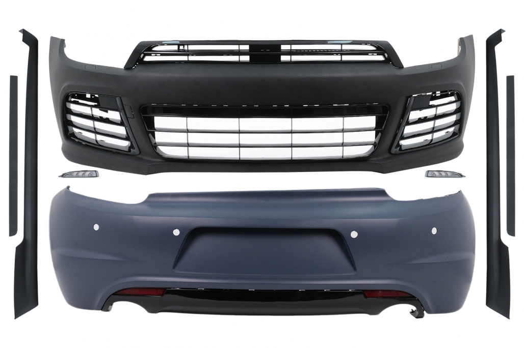 Acest kit caroserie VW Scirocco 2008-2014 include elementele esentiale pentru transformarea vizuala a masinii: bara fata, bara spate si praguri laterale. Bara fata este echipata cu grile centrale si laterale, lumini de zi si capace pentru spalatoarele farurilor, iar bara spate vine cu difuzor pentru evacuare dubla si catadioptrii laterali. Pragurile laterale completeaza linia sportiva si ofera un plus de stil intregului ansamblu.