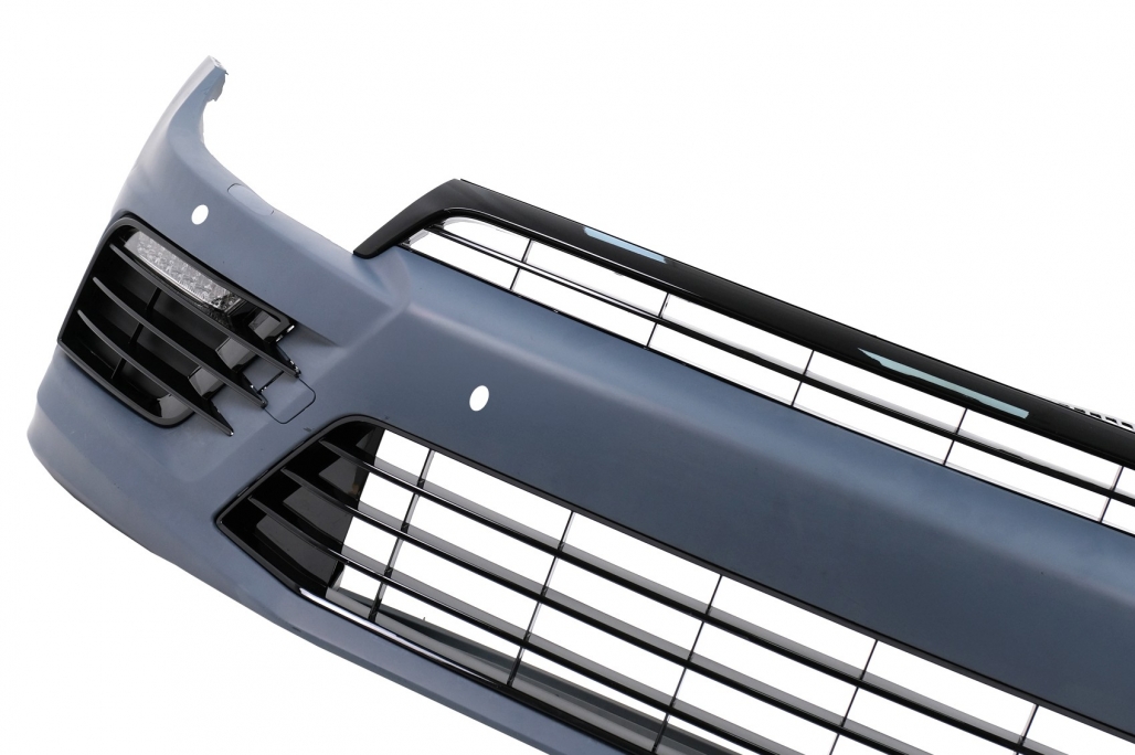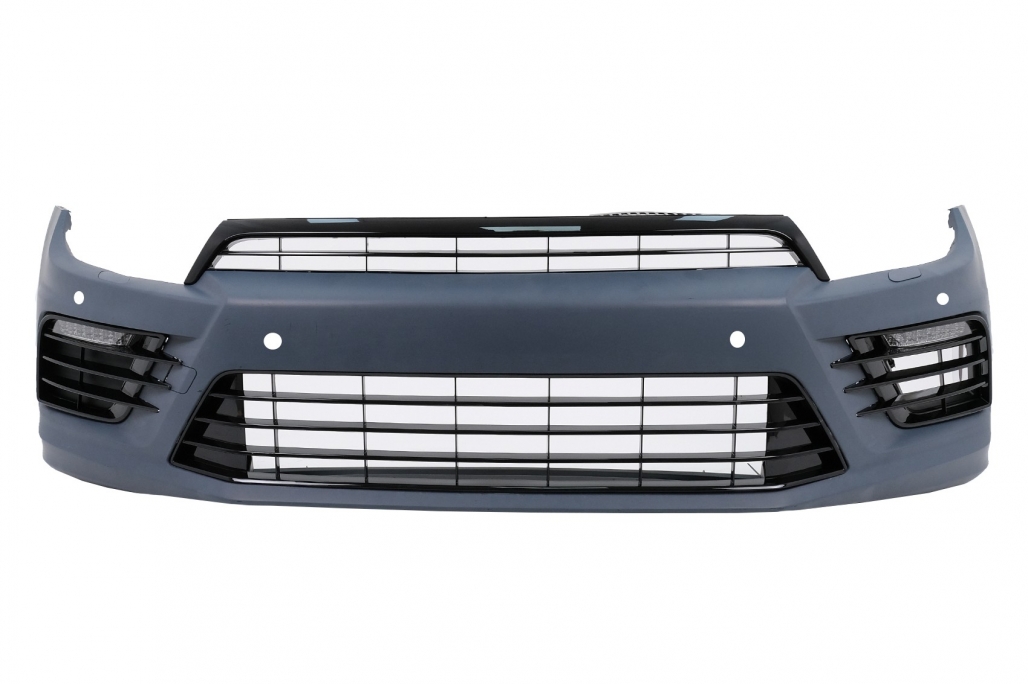 Acest body kit VW Scirocco include elementele esentiale pentru transformarea exteriorului: bara fata, bara spate si praguri laterale. Bara fata vine echipata cu grile cu finisaj negru lucios, lumini de zi LED si capace dedicate, iar bara spate completeaza designul cu un difuzor pentru evacuare dubla si catadioptrii laterali.