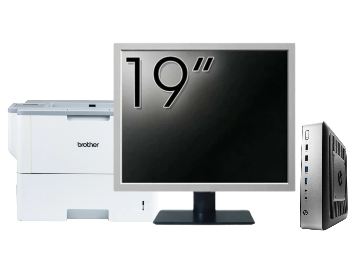 Pachet PC Second Hand HP T730 Thin Client, AMD RX-427BB 2.70-3.60GHz, 8GB DDR3, 32GB SSD Flash + Monitor 19" & Imprimanta Brother HL-L6300DW NewTechnology Media