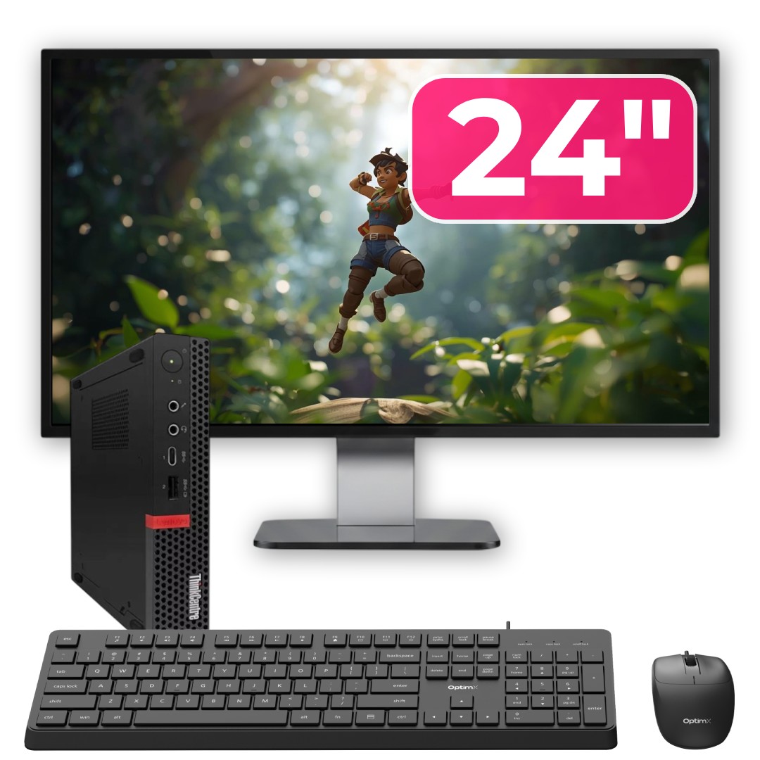 Pachet PC Second Hand Lenovo ThinkCentre M720q MiniPC, Intel Core i7-8700T 2.40 - 4.00GHz, 8GB DDR4, 256GB SSD NVMe + Monitor 24" + cadou tastatura si mouse OptimX Pro KM500 NewTechnology Media