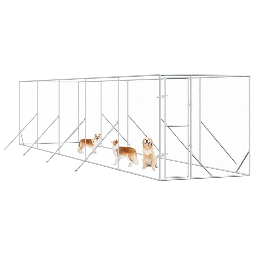 Padoc de exterior pentru câini argintiu 2x10x2m oțel galvanizat GartenMobel Dekor
