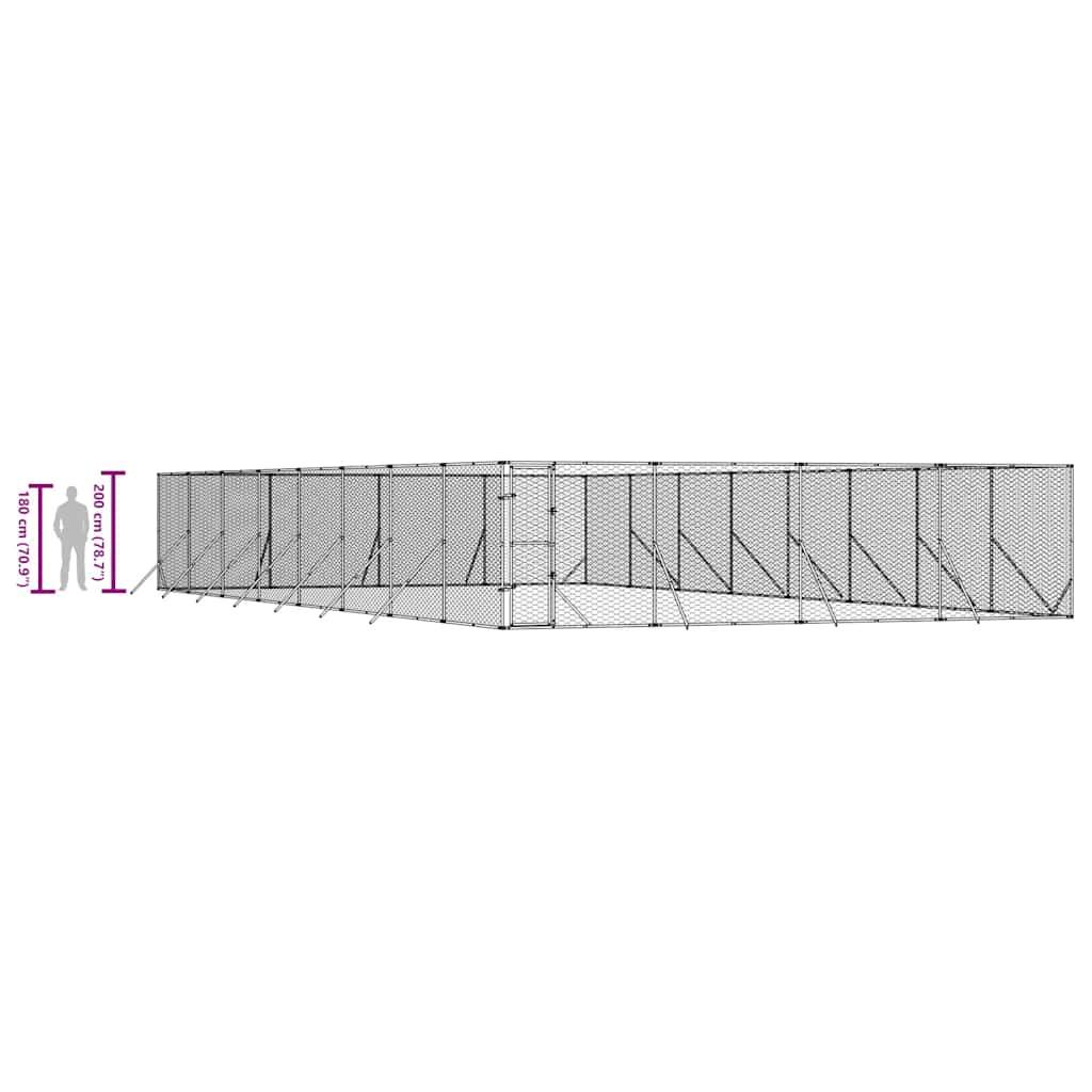 Padoc de exterior pentru câini argintiu 8x16x2m oțel galvanizat GartenMobel Dekor