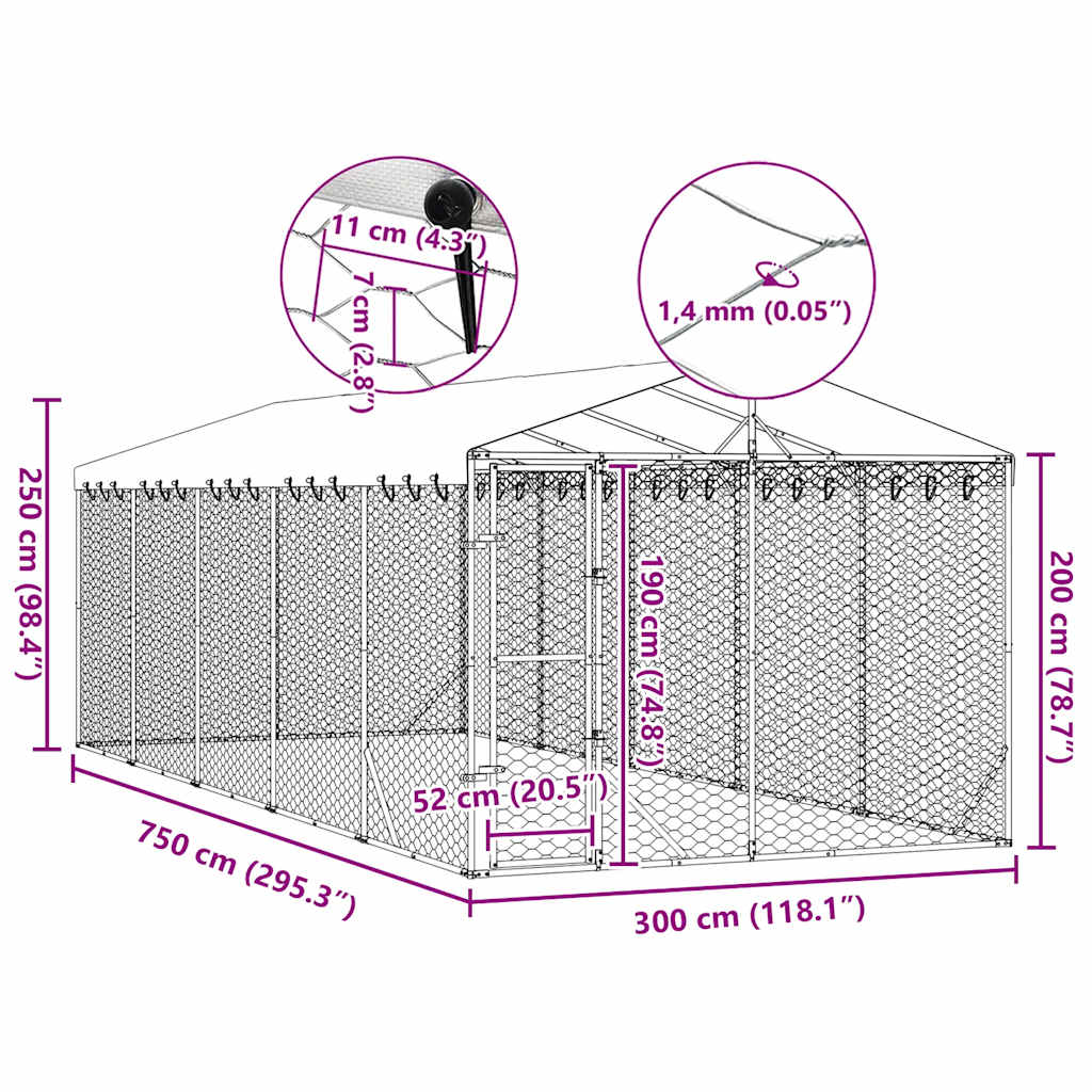 Padoc exterior cu acoperiș argintiu 3x7,5x2,5 m oțel galvanizat GartenMobel Dekor