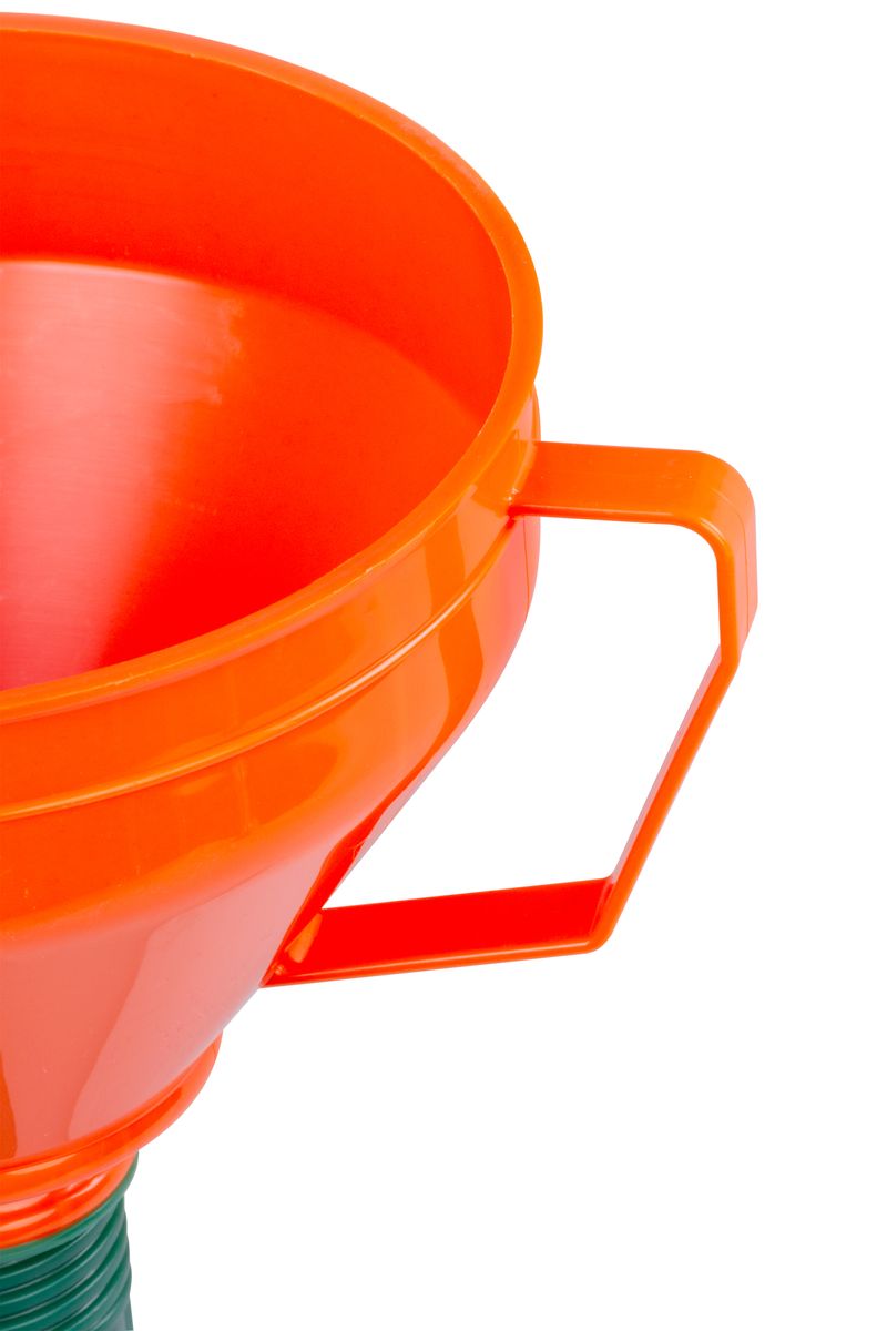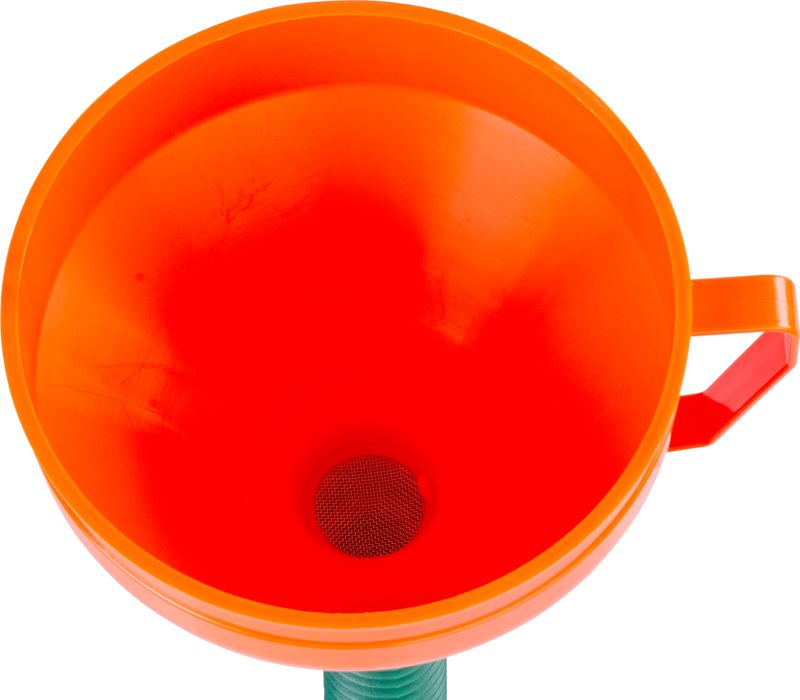 Pâlnia Strend Pro FFX160 este ideală pentru transferul rapid și curat al combustibilului și al altor lichide în recipiente cu gură îngustă. Are un corp înalt, culoare portocaliu-verde, furtun flexibil (flexi) pentru acces ușor și un mâner lateral pentru manevrare comodă.