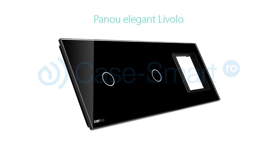 Panou 2 intrerupatoare simple cu touch si priza Livolo din sticla SmartElectro IntelligentHouse