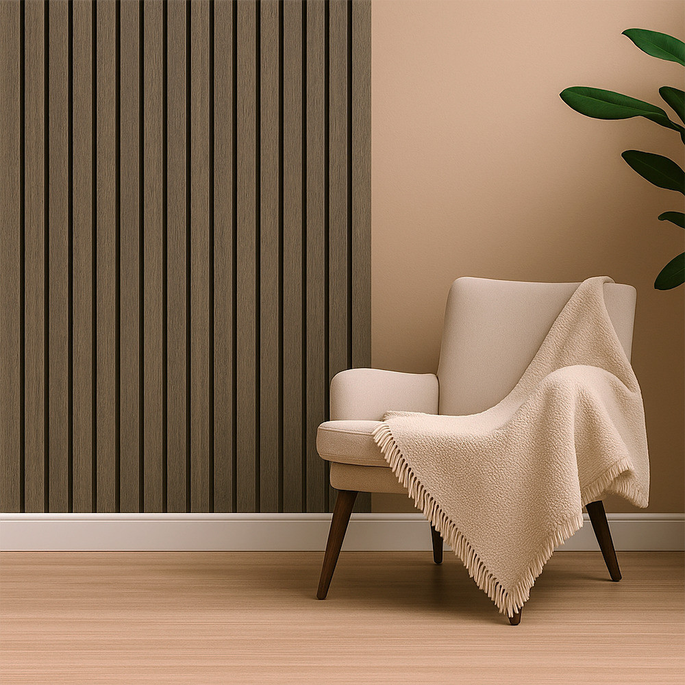 Transforma rapid atmosfera din camera cu acest panou acustic de perete Leziter, finisat in efect de stejar masliniu. Designul cu lamele verticale adauga un look modern si cald, iar stratul fonoabsorbant ajuta la reducerea ecoului si la obtinerea unui sunet mai echilibrat in locuinta, birou sau spatii HoReCa.