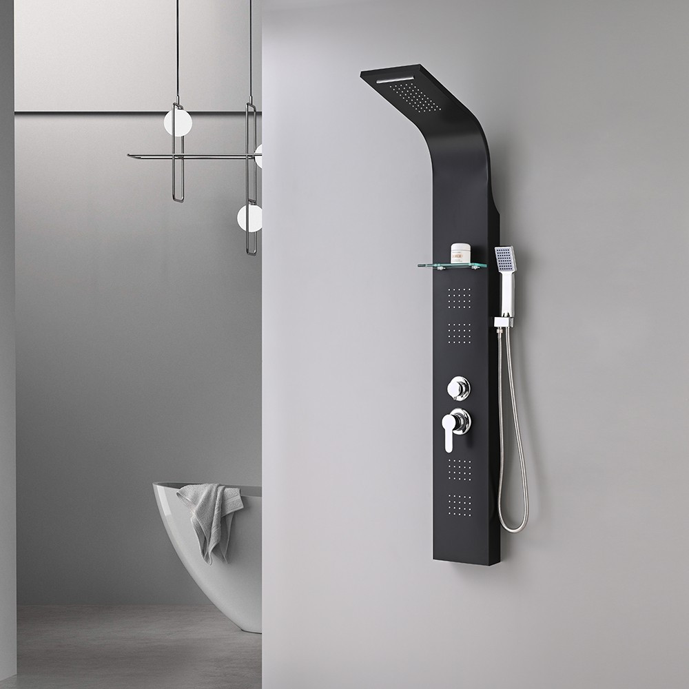 Panou de duș cu hidromasaj Leziter Alegro Black din oțel inoxidabil