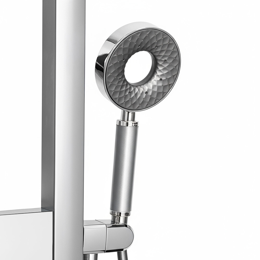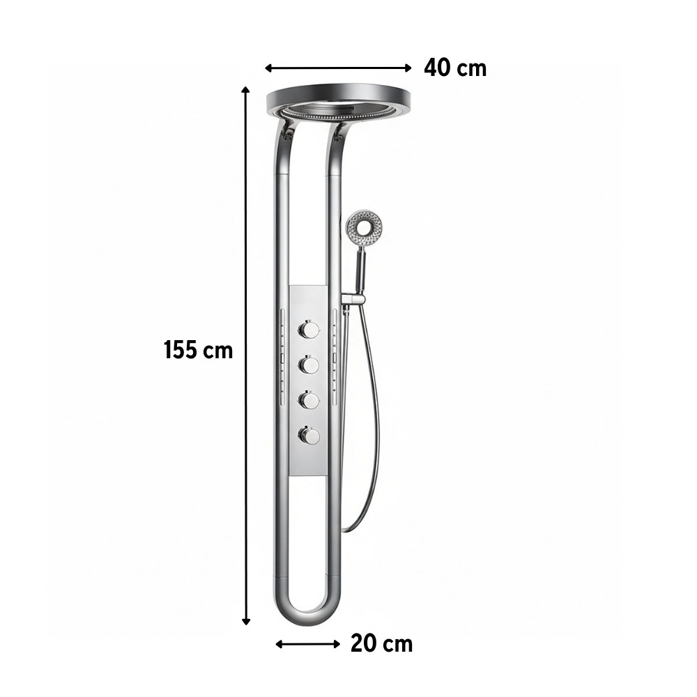 Bucură-te de un duș ca la spa, chiar la tine acasă. Panoul de duș cu hidromasaj Leziter Aquajet în finisaj crom combină un design modern cu funcții multiple: duș superior cu 2 moduri, jeturi laterale pentru corp și duș de mână cu 3 funcții. Ideal pentru băi din România unde vrei confort, relaxare și un plus de stil.