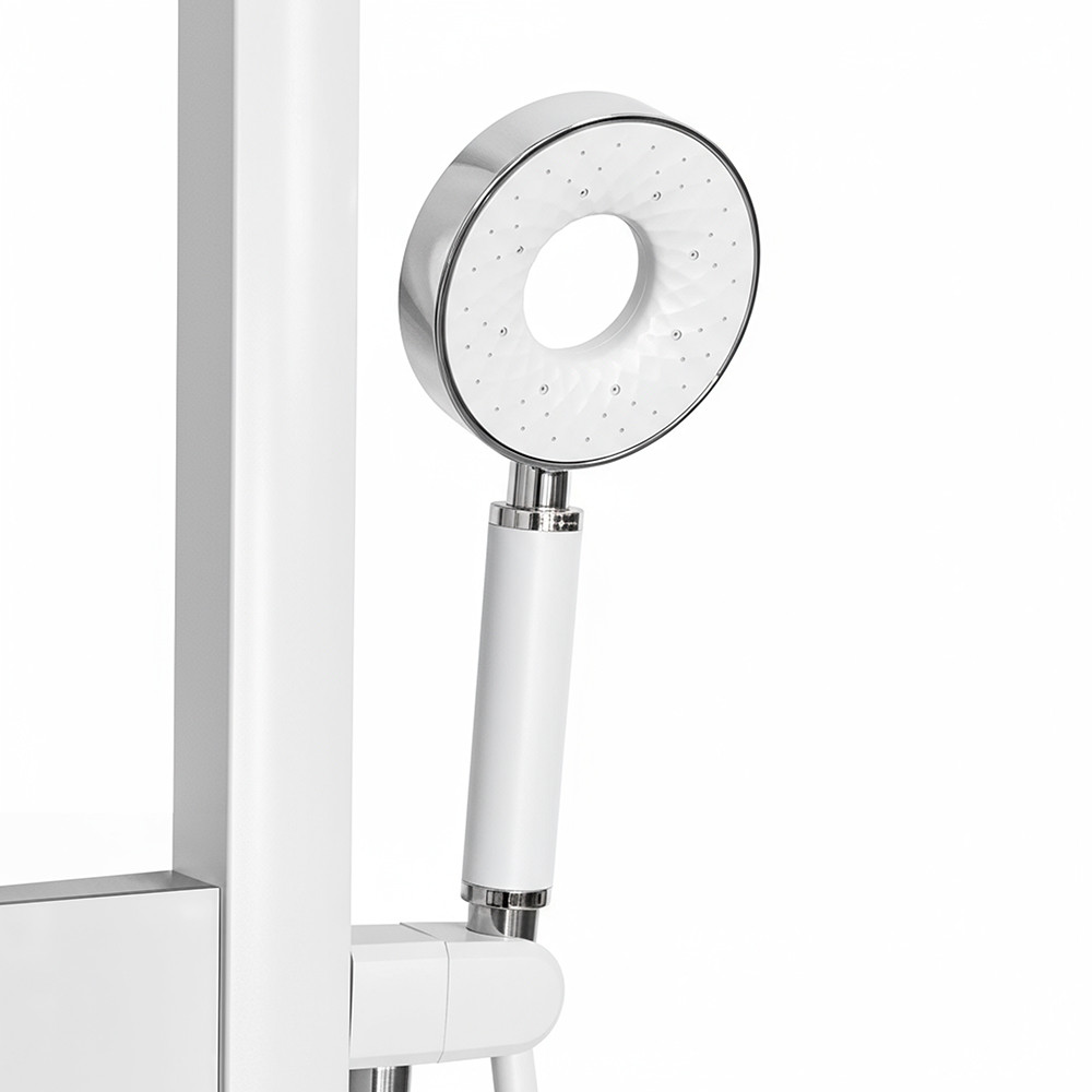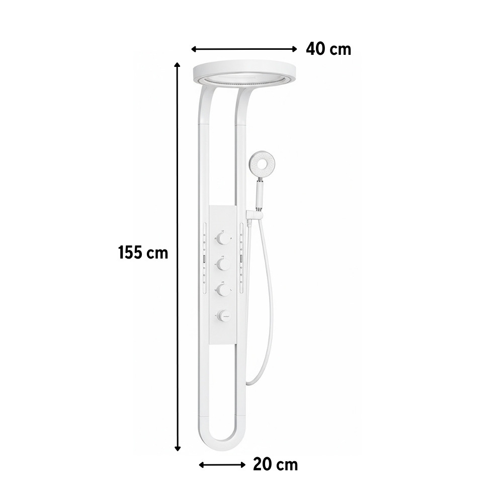 Panou de duș hidromasaj Leziter Aquajet alb, inox, cap cascadă și jeturi corp