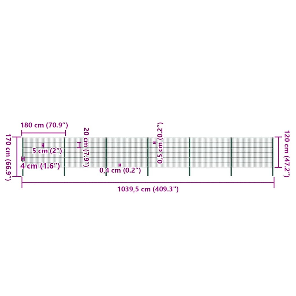 Specificatii Panou gard stâlpi fier, verde, 1040x120