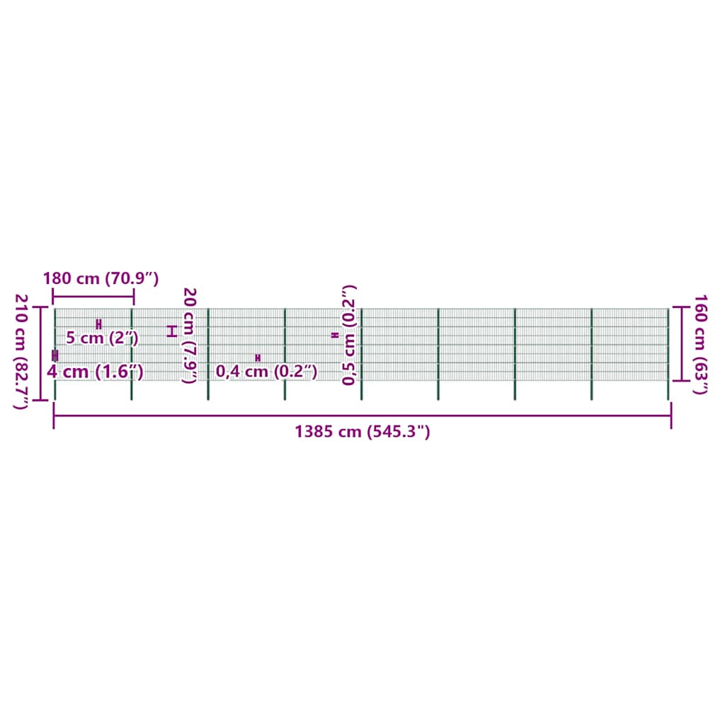 Specificatii Panou gard stâlpi fier, verde, 1385x160