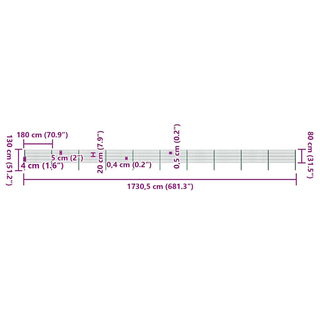 Panou de gard cu stâlpi din fier, verde, 1730x80 cm GartenMobel Dekor