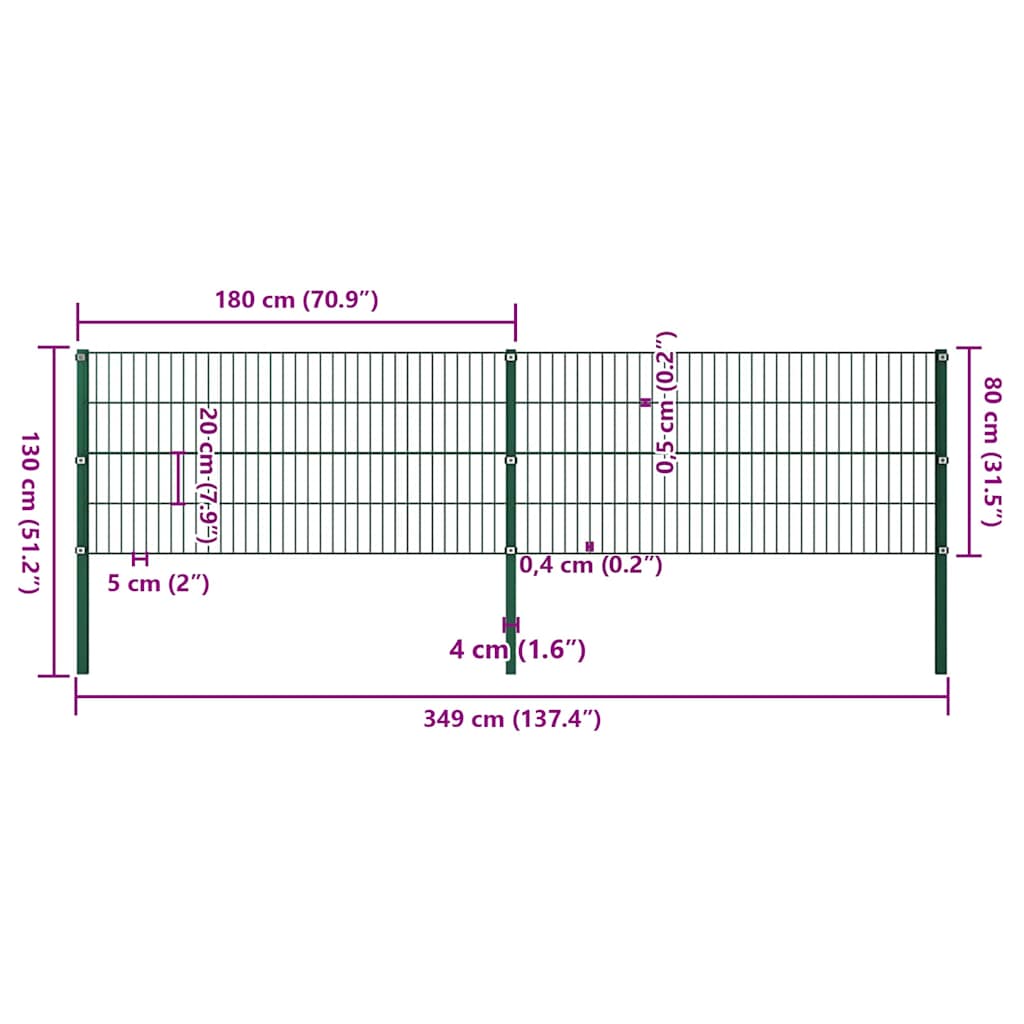 Specificatii Panou gard stâlpi fier, verde, 349x80