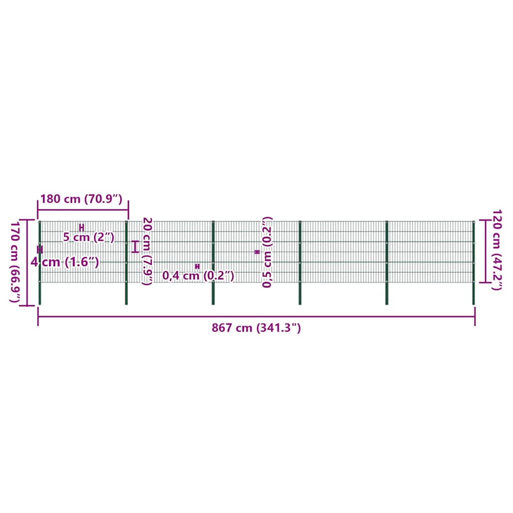 Specificatii Panou gard stâlpi fier, verde, 867x120