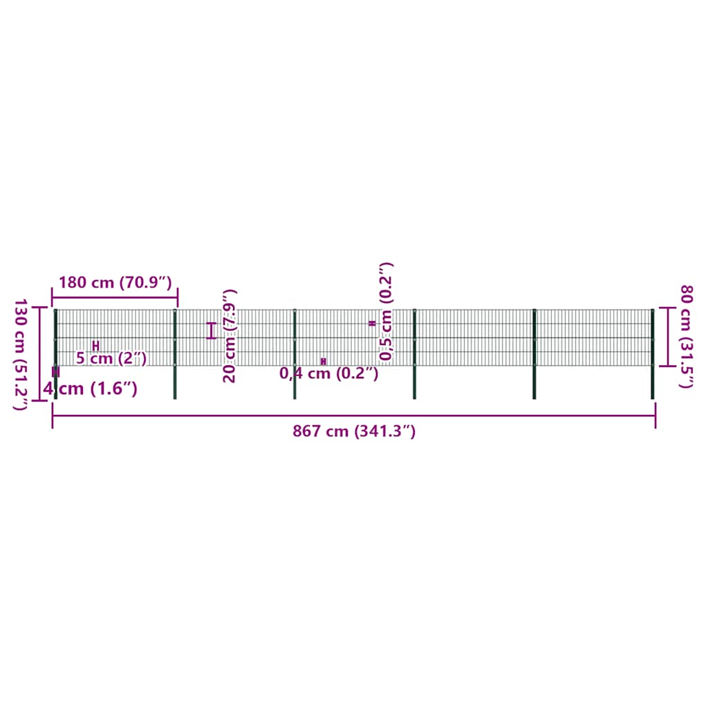 Specificatii Panou gard stâlpi fier, verde, 867x80